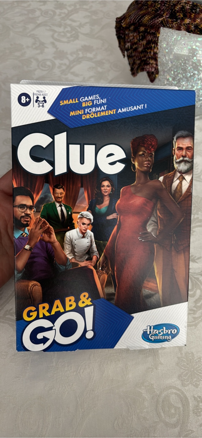 Selling a Clue Grab and Go game! It's a portable version perfect for travel and fun on the go. Recommended for ages 8 and up, and designed for 3-6 players. Enjoy solving mysteries in a compact format!