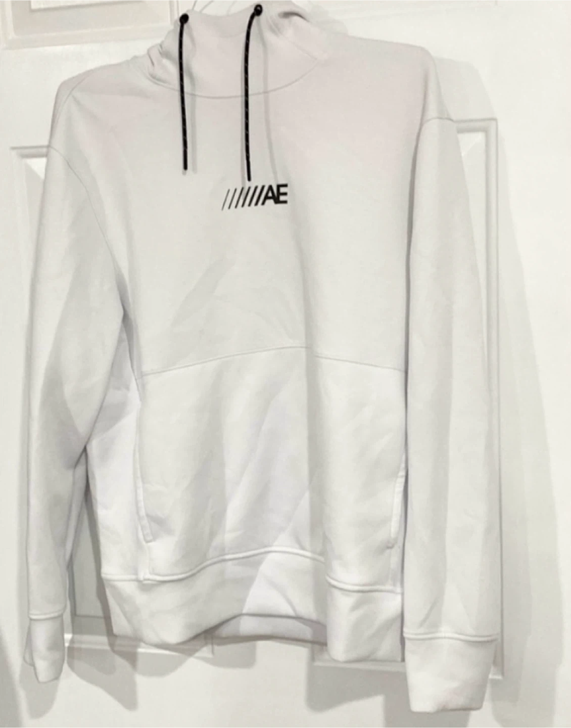 Selling a gently used white hoodie from American Eagle! It's a size medium and in great condition. The hoodie features the AE logo and a drawstring hood. Perfect for staying cozy on cooler days
