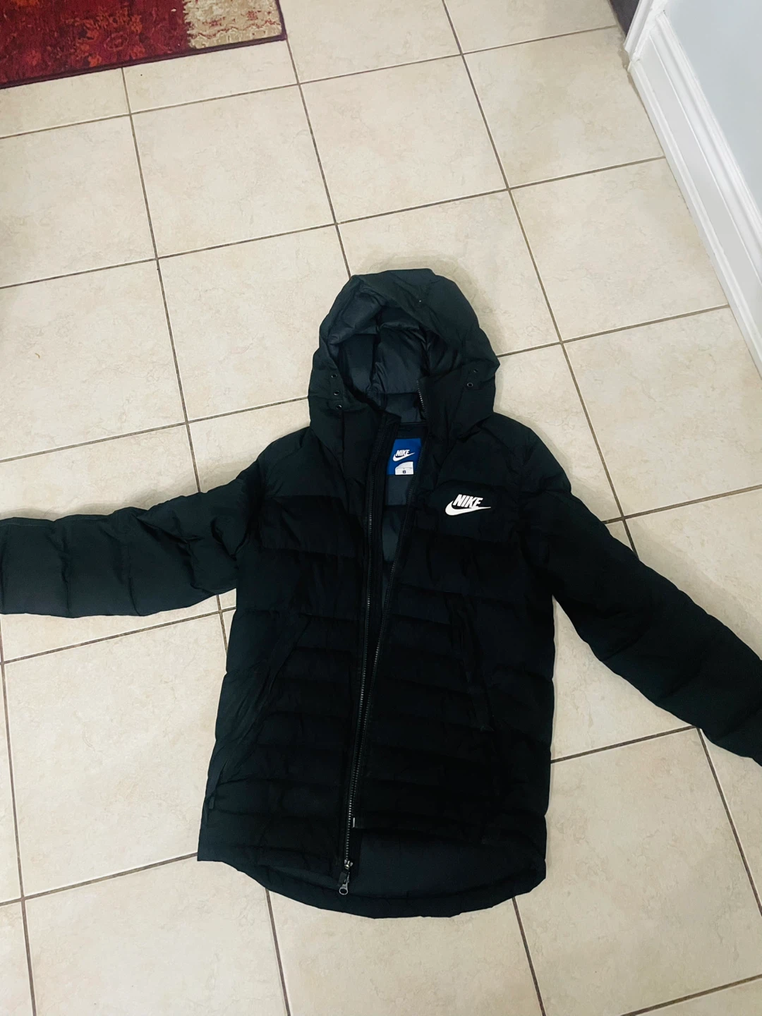 Selling a Nike puffer jacket in black, size small. It's in great condition and ready to keep you warm this winter!
