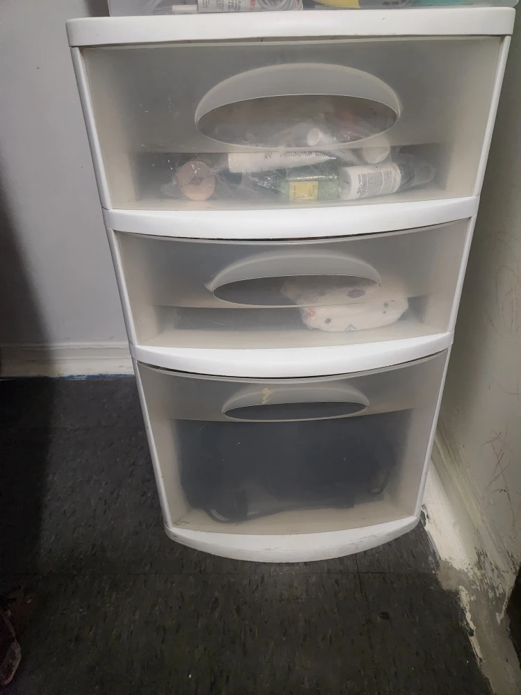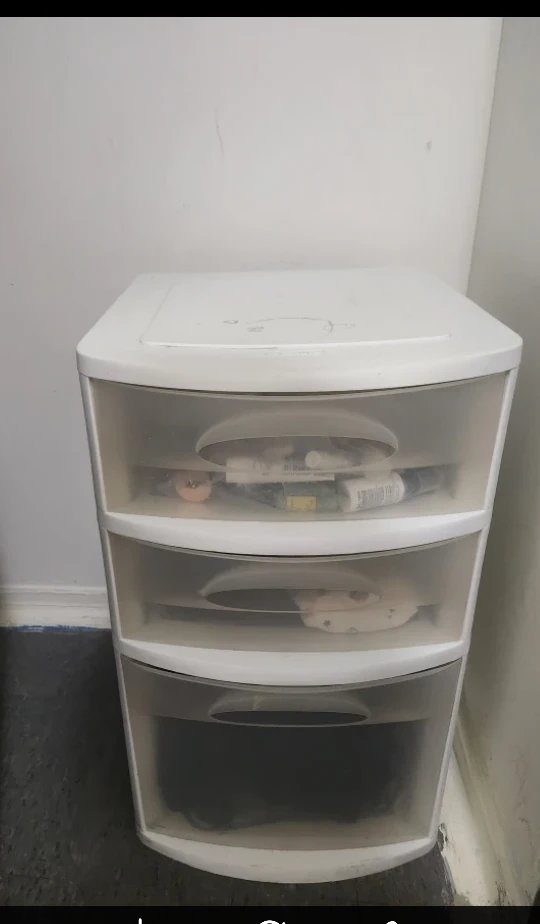I'm selling a Sterilite 3-drawer storage tower. It's white and in good condition. Perfect for organizing your things!some mark of marker can be remove.