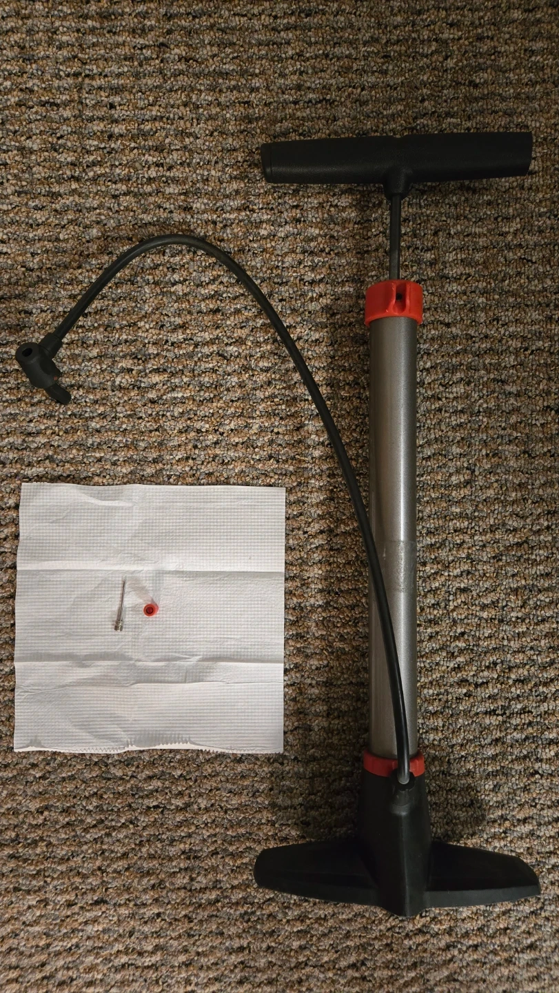 Comes with adaptor and pin to inflate basketballs, volleyballs, soccer balls, etc. It also inflates bicycle, trailer and car tires.
