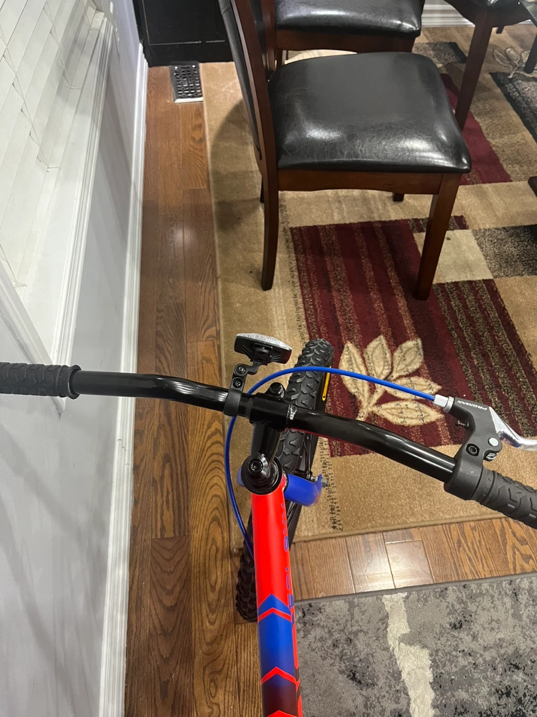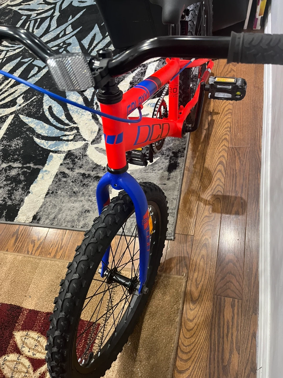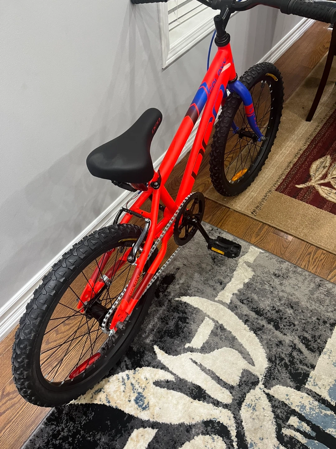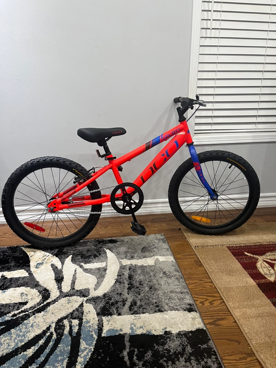Selling a DJO Galaxy kids bike with 20-inch wheels! The frame is a vibrant red with blue accents. It's in good condition and ready for some new adventures. Perfect for kids learning to ride or those who need a reliable bike for getting around the neighbourhood