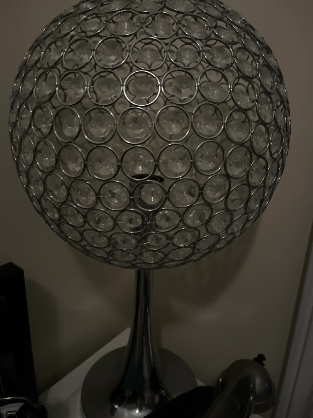 Selling a unique crystal ball table lamp! It adds a touch of elegance to any room. The lamp features a spherical design adorned with clear crystals, creating a beautiful lighting effect. Perfect for a bedside table, desk, or living room accent