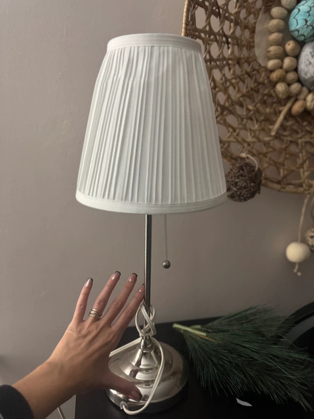 Selling a cute little table lamp! It has a silver base and a pleated white shade. It's in great condition and would look perfect on a bedside table or desk