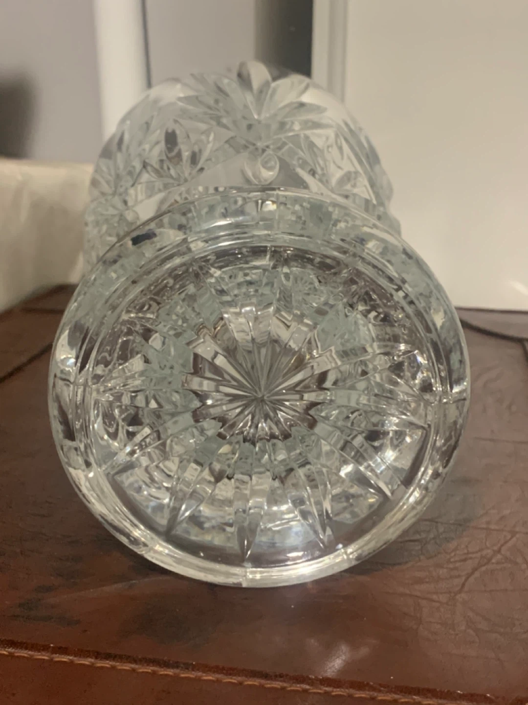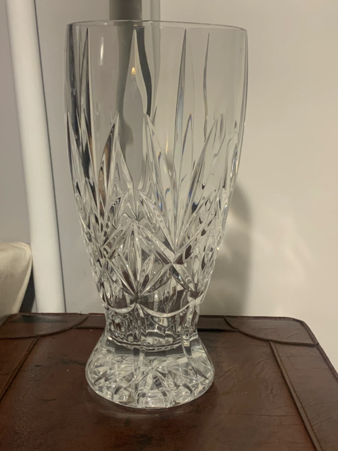 A stunningly beautiful crystal glass vase with an elegant, intricate design. I purchased new but never used it.