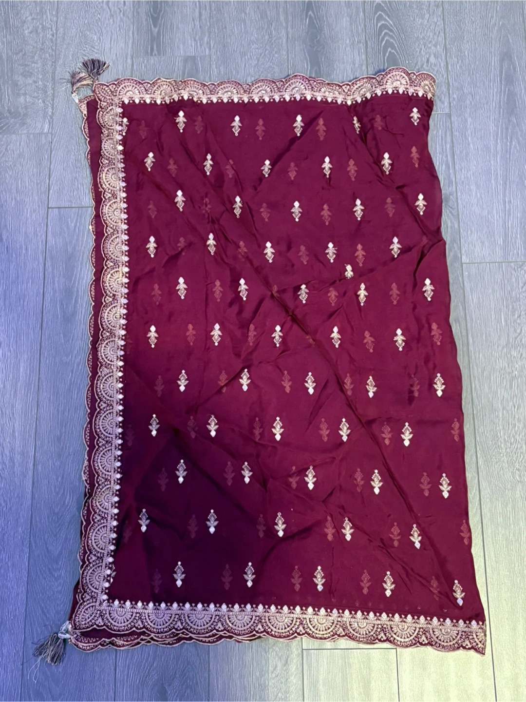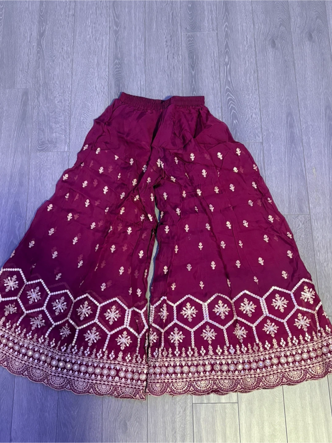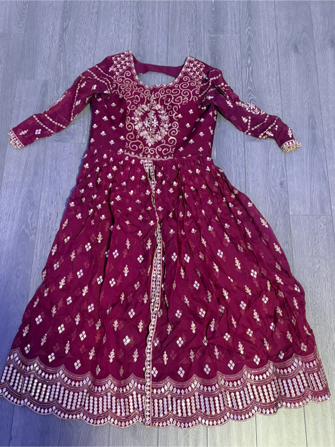 Selling a beautiful maroon Salwar Kameez suit. It's in great condition and features intricate gold detailing. Perfect for special occasions like a mehndi or adding a touch of elegance to your wardrobe!