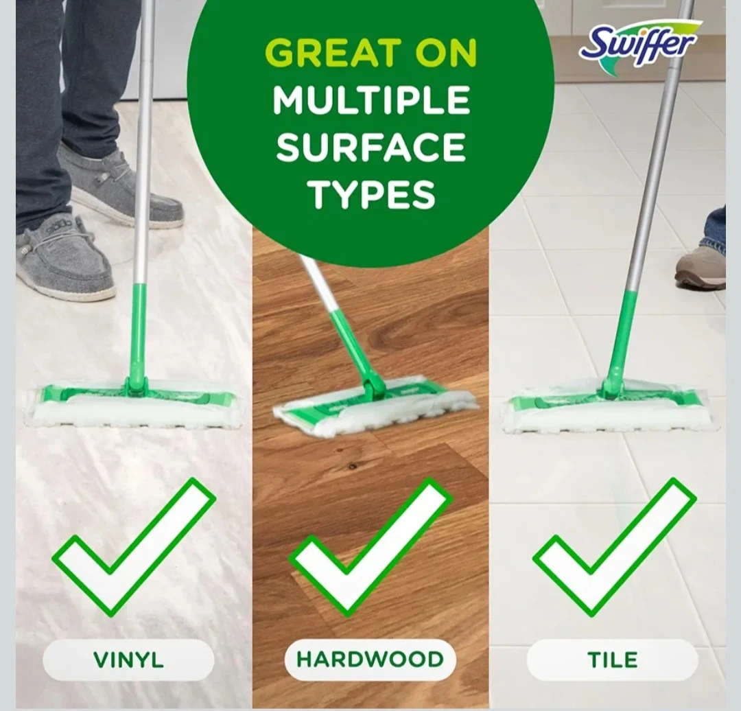 Keep your floors clean with this Swiffer Sweeper! It's great on multiple surface types like vinyl, hardwood, and tile. It also removes up to 95% of allergens, making it a great addition to your cleaning supplies