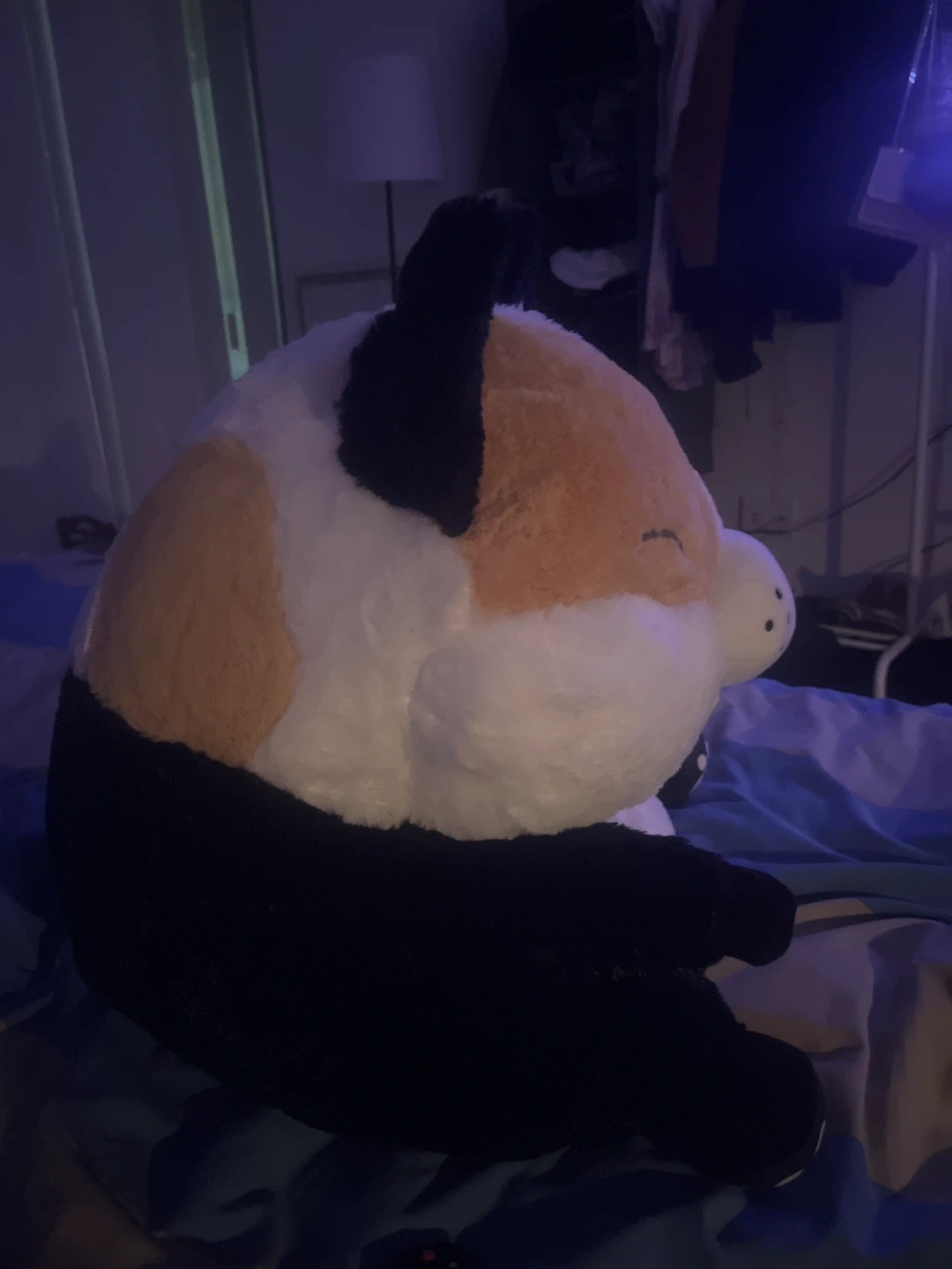 Selling a cute calico cat plush toy! It's in great condition and super soft. Perfect for cuddling or as a decorative piece. It has black, white, and orange markings. :))