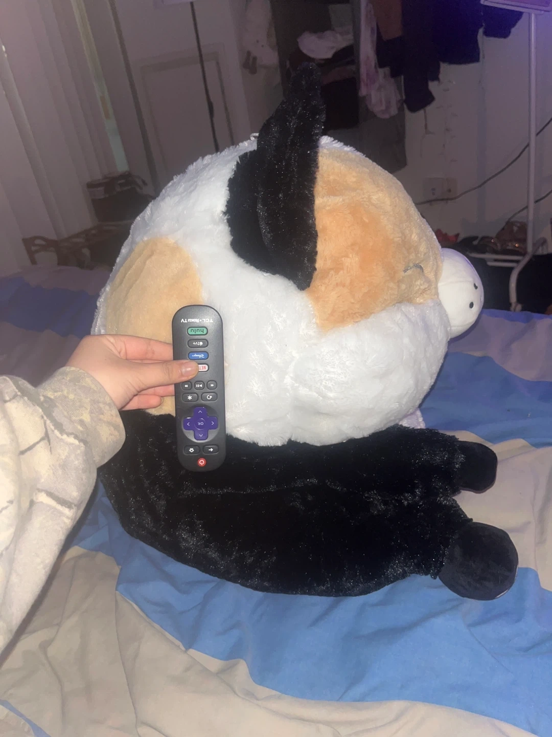 I put the tv remote so you can see how big it is comparing. It’s a big plushie, don’t need it anymore it’s taking up space. :))