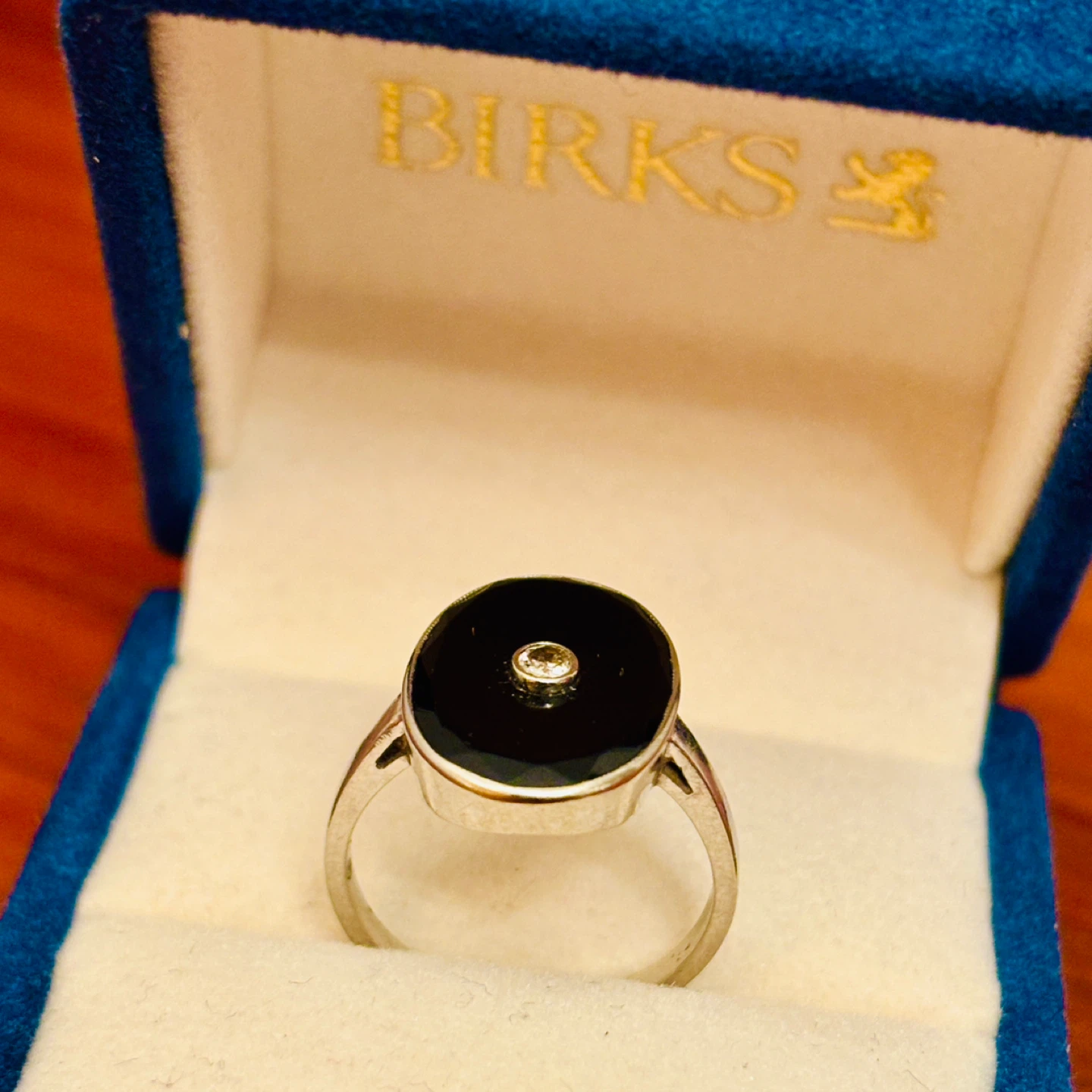 $1.6k 14k White Gold VS2 Diamond & Onyx Ring