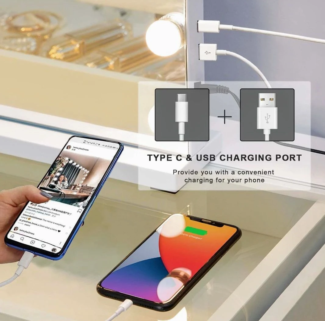 In excellent working condition!! It features a Type C & USB charging port for convenient phone charging. You can also adjust the lighting to cold, natural, or warm light depending on your makeup needs.