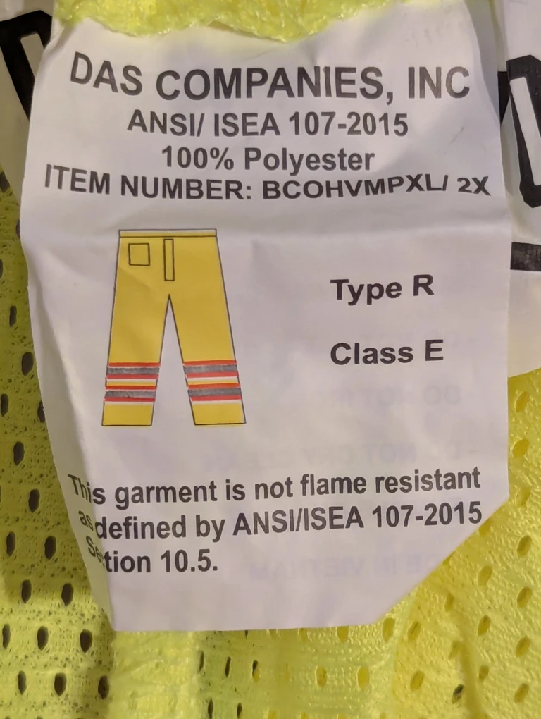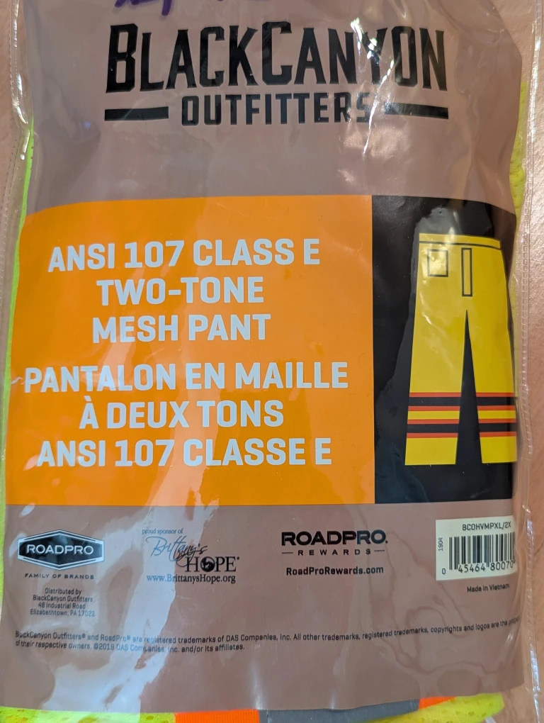 These ANSI 107 class E certified pants feature reflective strips and fluorescent yellow mesh material for better visibility during the day and night and other low-light conditions. Comfortable drawstring waist for adjustable fit.