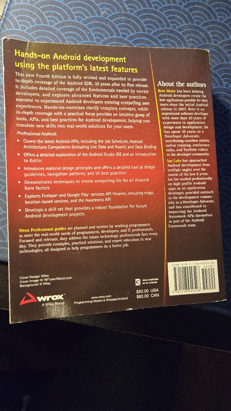 Selling a copy of "Professional Android: Hands-on Development" by Reto Meier and Ian Lake.