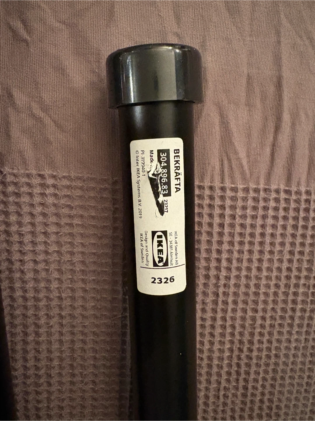 Selling a BEKRÄFTA curtain rod from IKEA in black. It's in great condition and ready to hang! The rod measures 120-210 cm (47 1/4-82 3/4 ") and is 28 mm (1 1/8 ") in diameter.