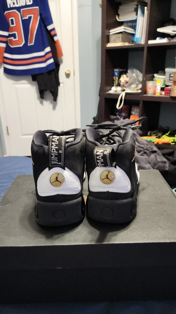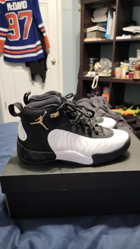 Selling a pair of Kids Air Jordan Jumpman Pro sneakers! They are black and white and comes with a black air Jordan shoe box.