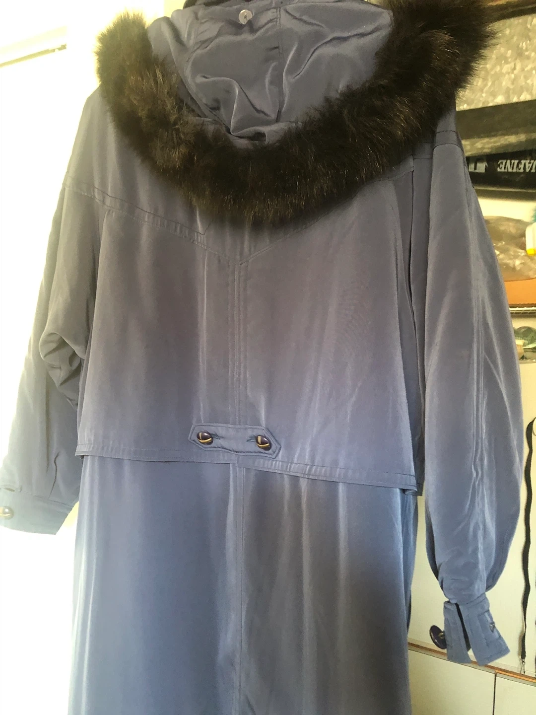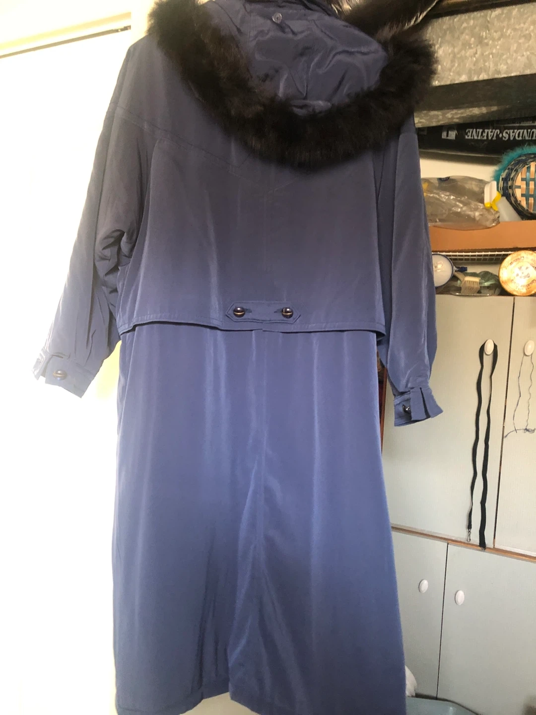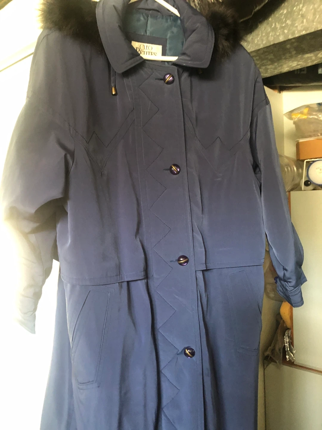 winter coat in a lovely navy blue colour! It has a faux fur hood. Perfect for staying warm during the colder months. Bought from Cleo’s and worn 5 times