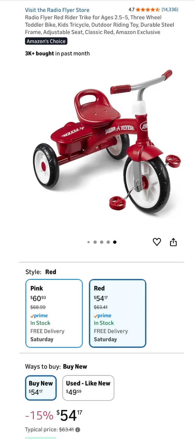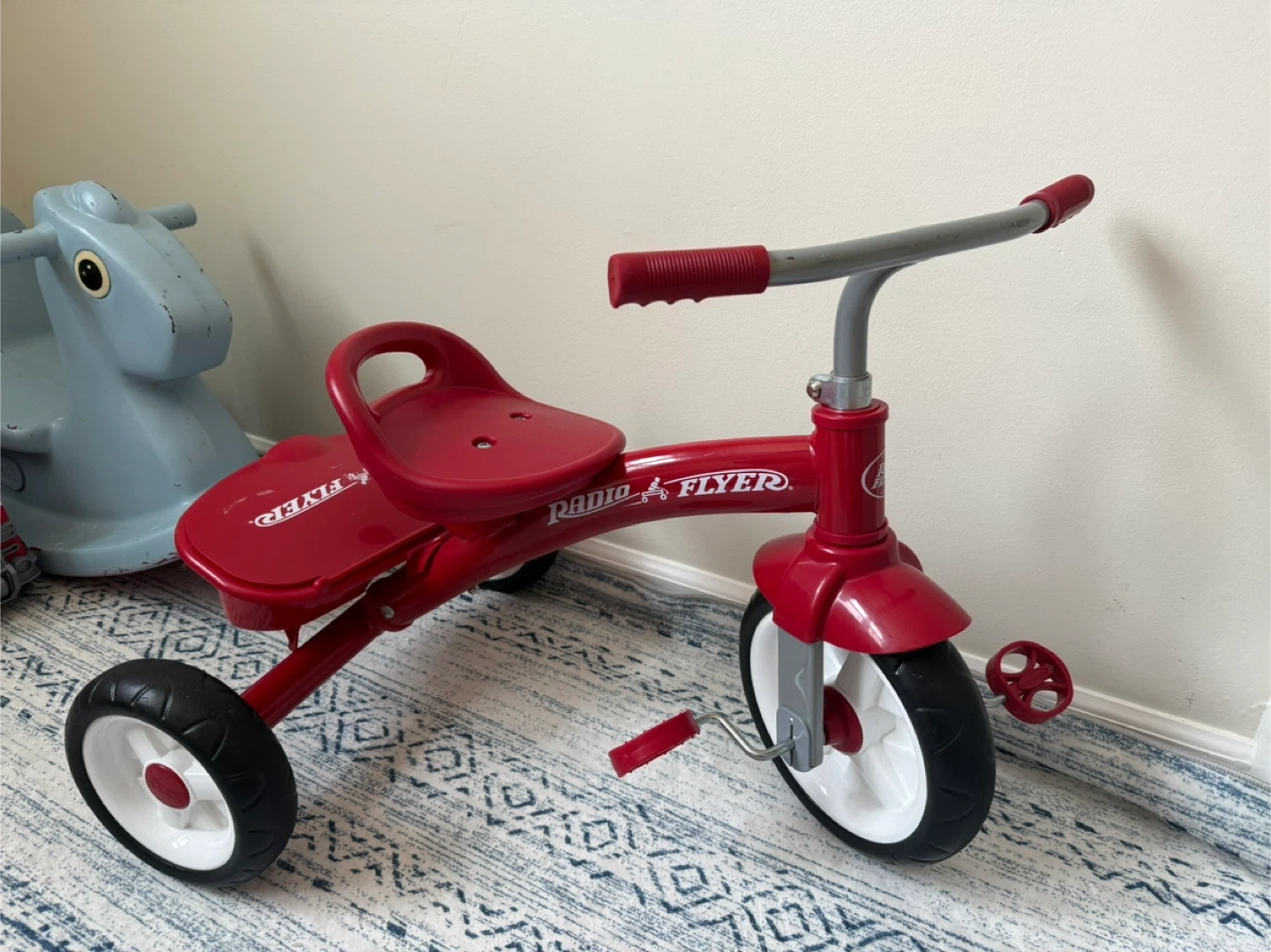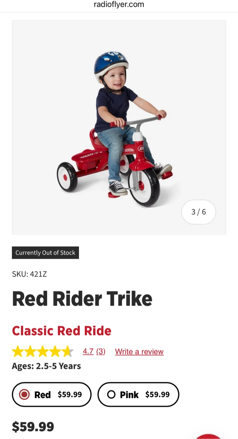 Selling a classic red Radio Flyer Red Rider Trike! This three-wheel toddler bike is perfect for ages 2.5-5 years. It features a durable steel frame and an adjustable seat. Great for outdoor adventures!