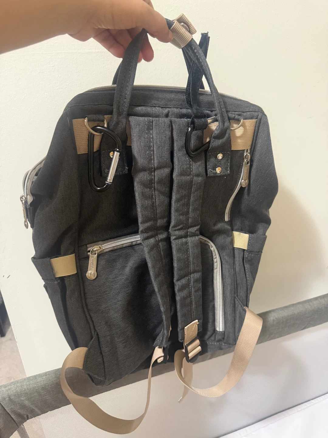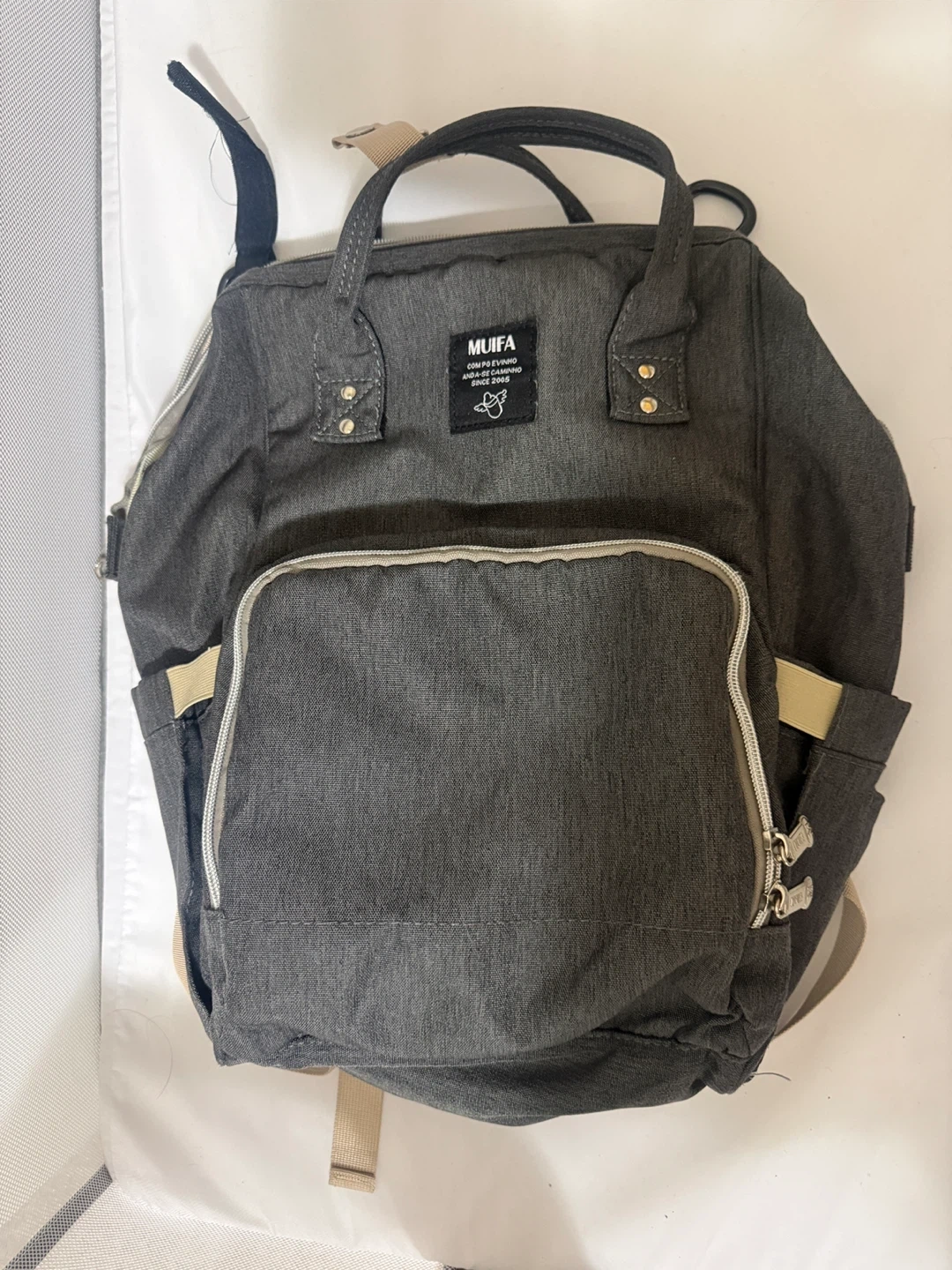 This is a MUJIFA diaper bag backpack in grey! It's in great condition and ready for a new family. It has lots of pockets and compartments to keep all your baby essentials organized. Perfect for outings with your little one! Rarely been used.