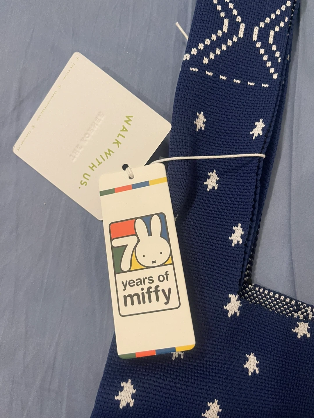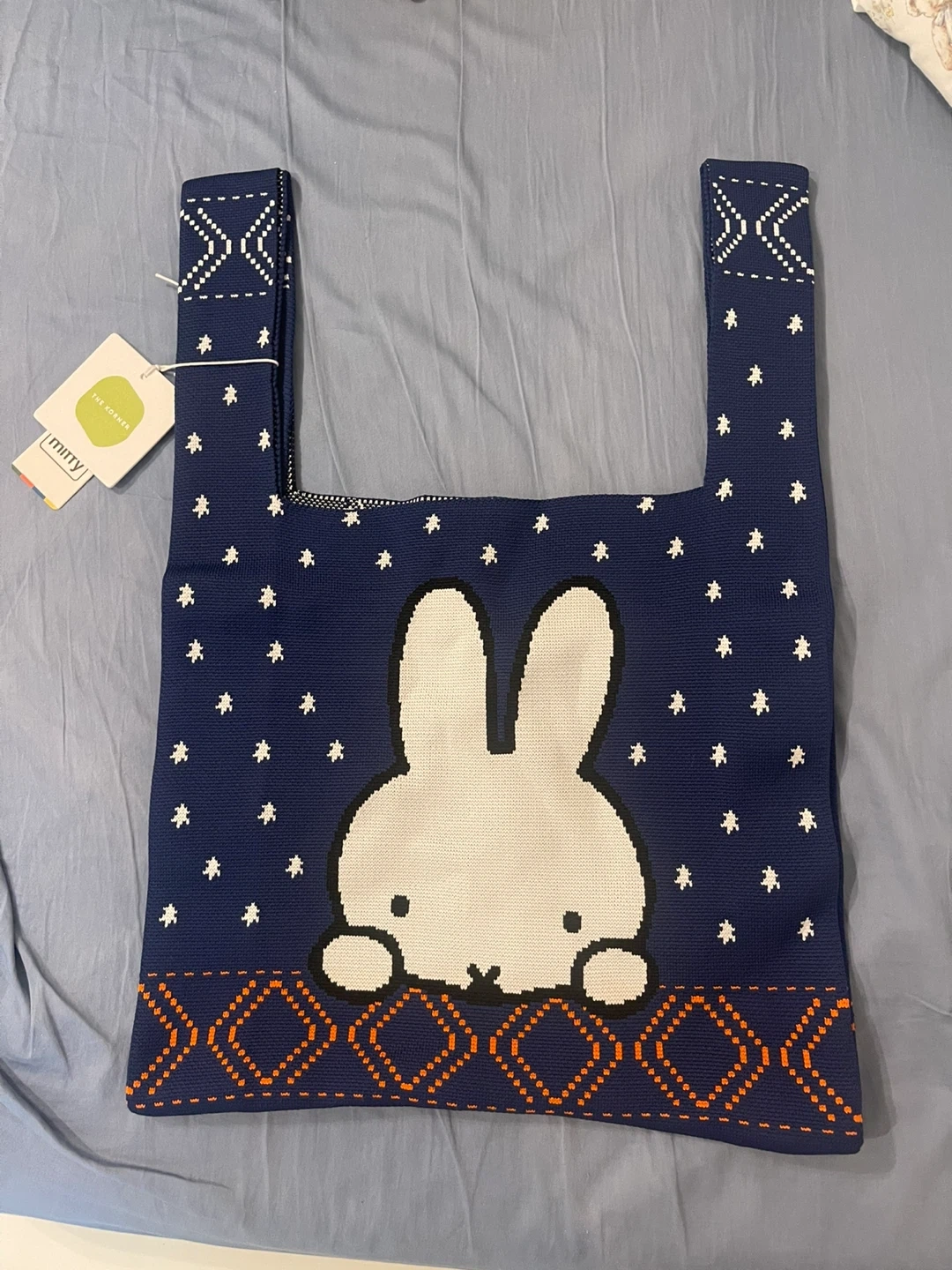 Selling a brand new Miffy The Korner tote bag! It's a cute navy blue colour with a white Miffy design and orange accents. Perfect for carrying groceries or everyday essentials