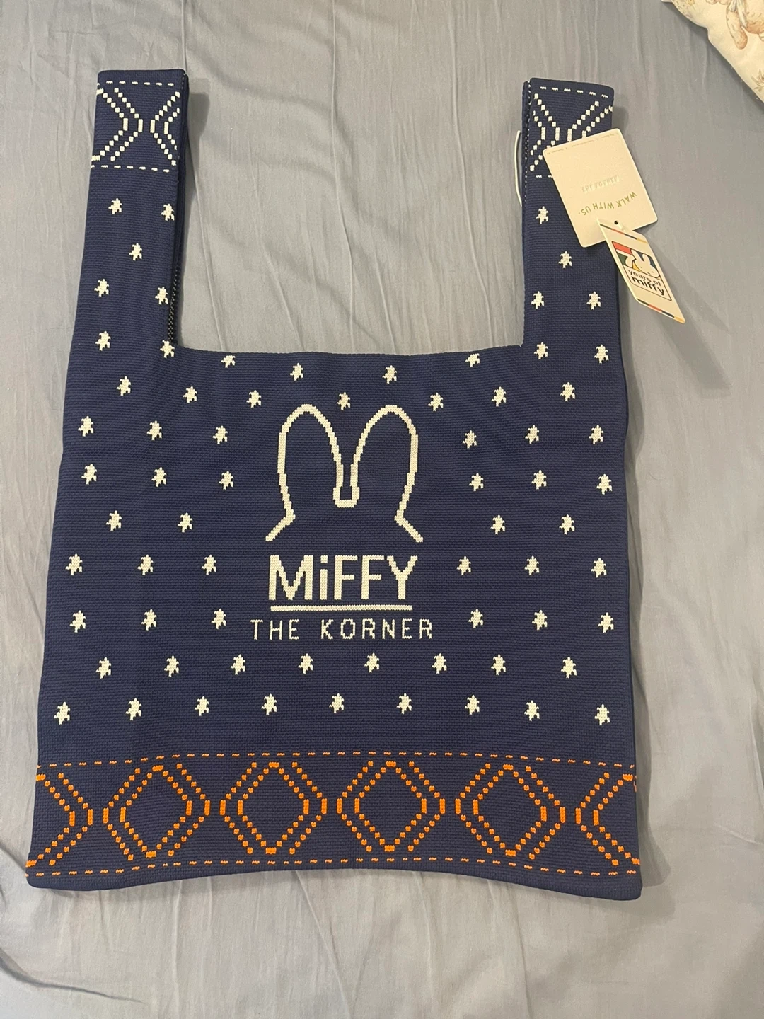 Selling a brand new Miffy The Korner tote bag! It's a cute navy blue colour with a white Miffy design and orange accents. Perfect for carrying groceries or everyday essentials
