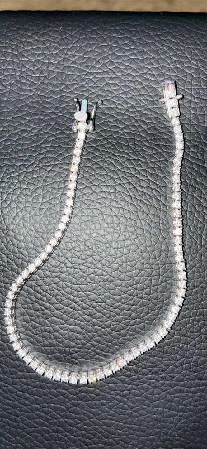 Experience premium shine with this elegant 3mm Moissanite tennis bracelet, crafted in solid 925 sterling silver and set with brilliant VS-clarity stones that catch light from every angle. This piece delivers luxury-level sparkle without the luxury markup.