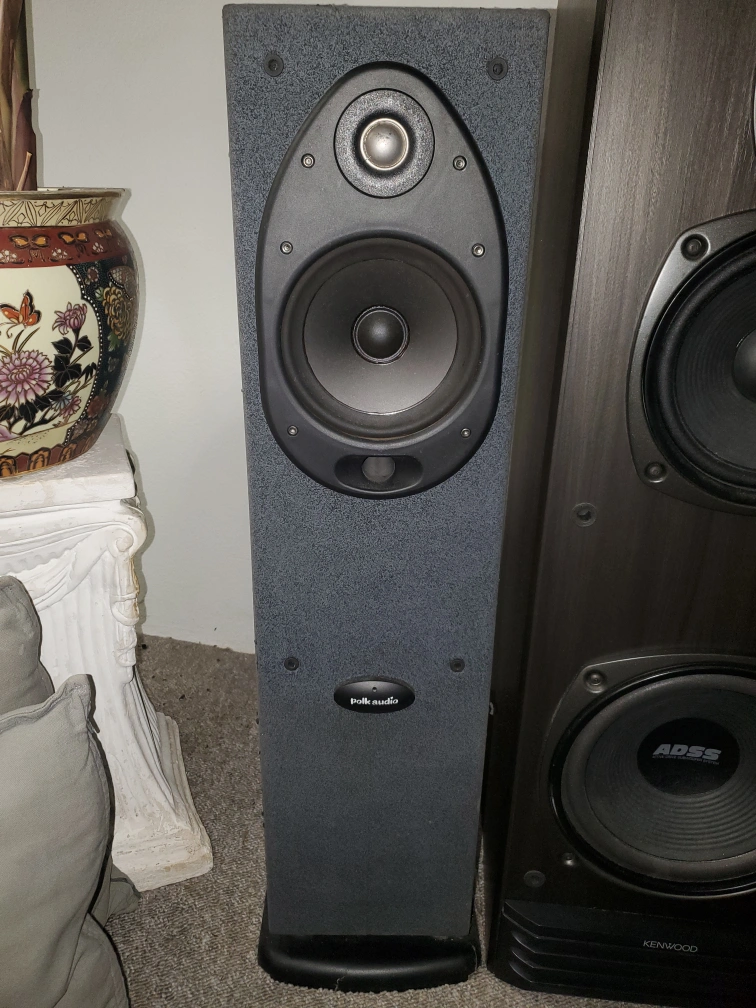 Polk speakers not in perfect shape but still look good sound great very nice bass nothing on the speakers with information all I can tell you is they are loud and sound very nice