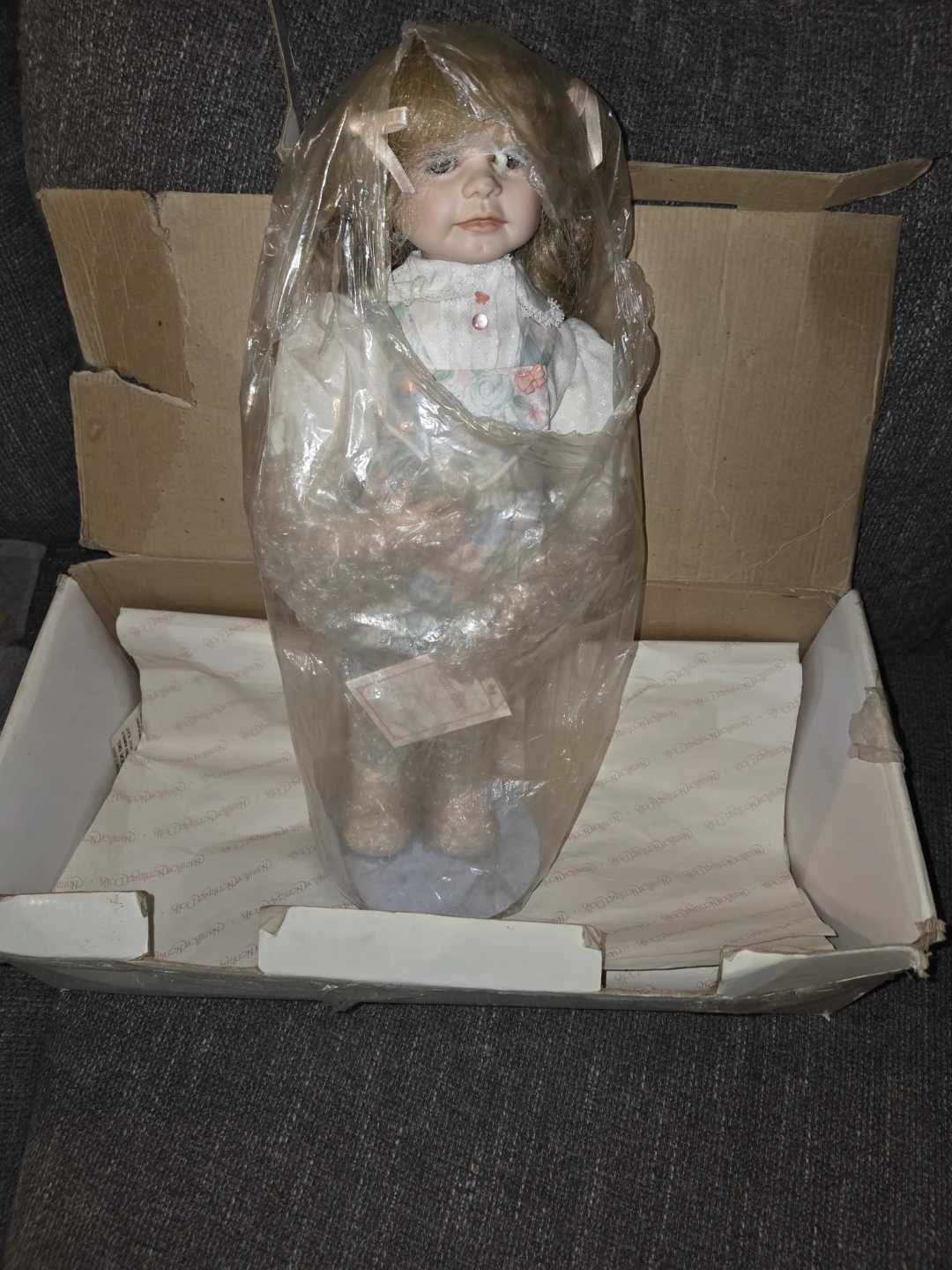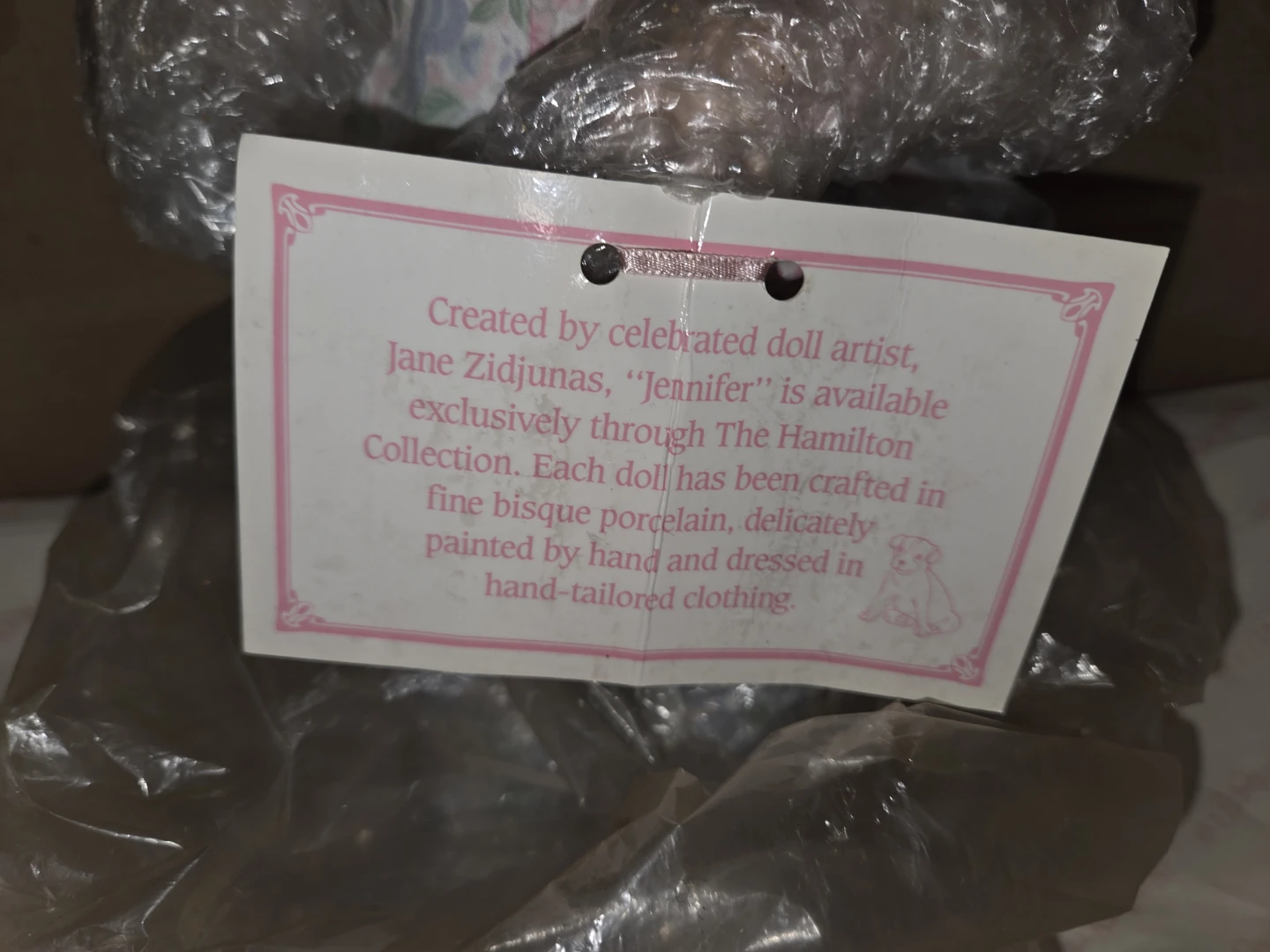 This is a beautiful Jane Fudgimas porcelain doll named Jennifer! It comes in its original box. The doll is wearing a floral outfit with a white top. It's a lovely collectible piece!