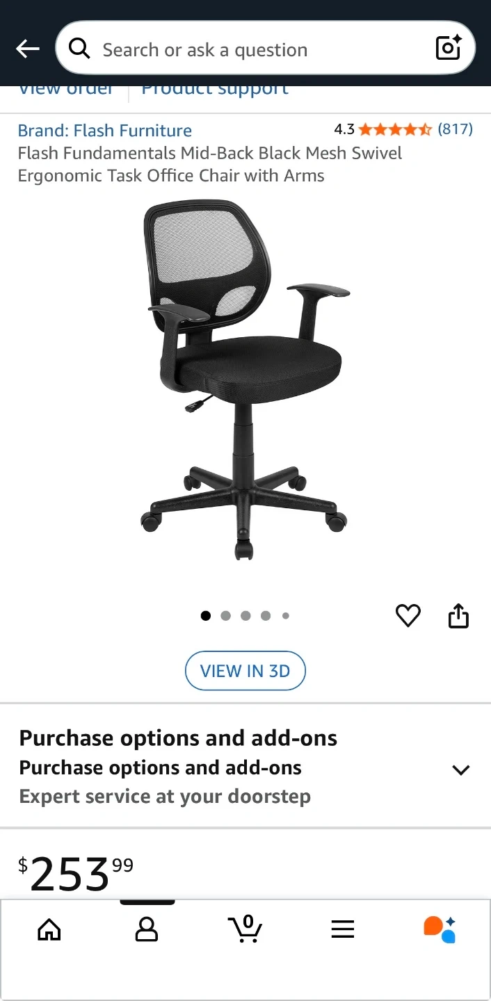 Selling a Flash Furniture mid-back black mesh swivel ergonomic task office chair with arms. It's in great condition and ready for a new workspace! Originally bought for $253.99.