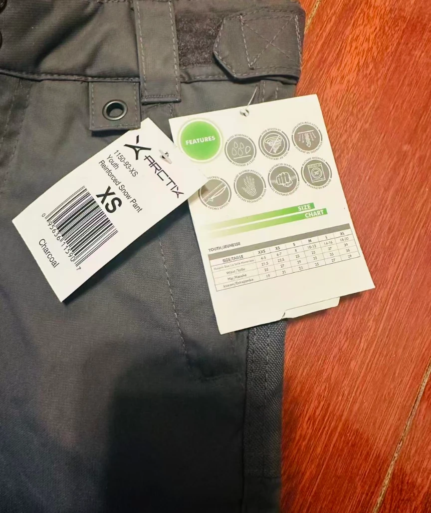 I'm selling a pair of Arctix quilted reinforced snow pants in size XS. These are in great condition and ready for the slopes! They're charcoal in colour and have some great features to keep you warm and dry on those snowy days