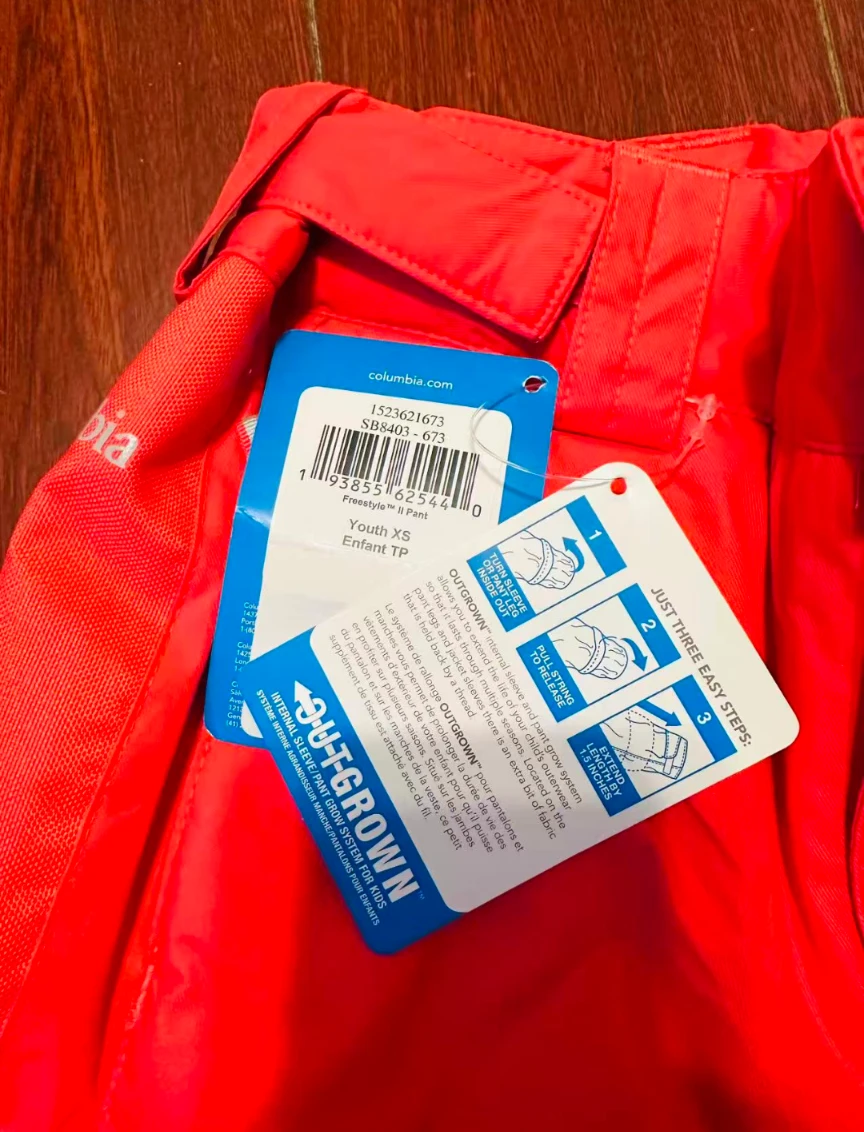 These Columbia snow pants are in excellent condition and ready for the slopes! They're a youth extra small (XS) size and feature the Outgrown system, which allows you to extend the sleeves as your child grows. Just three easy steps to adjust the length!