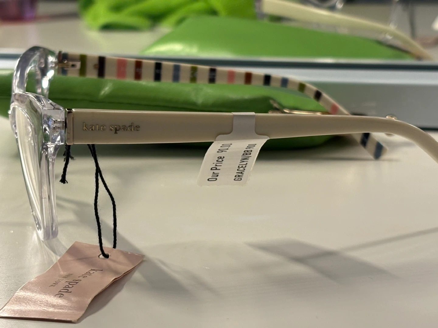 The clear cat-eye style is super chic, and the colourful striped arms make them extra cute 💖