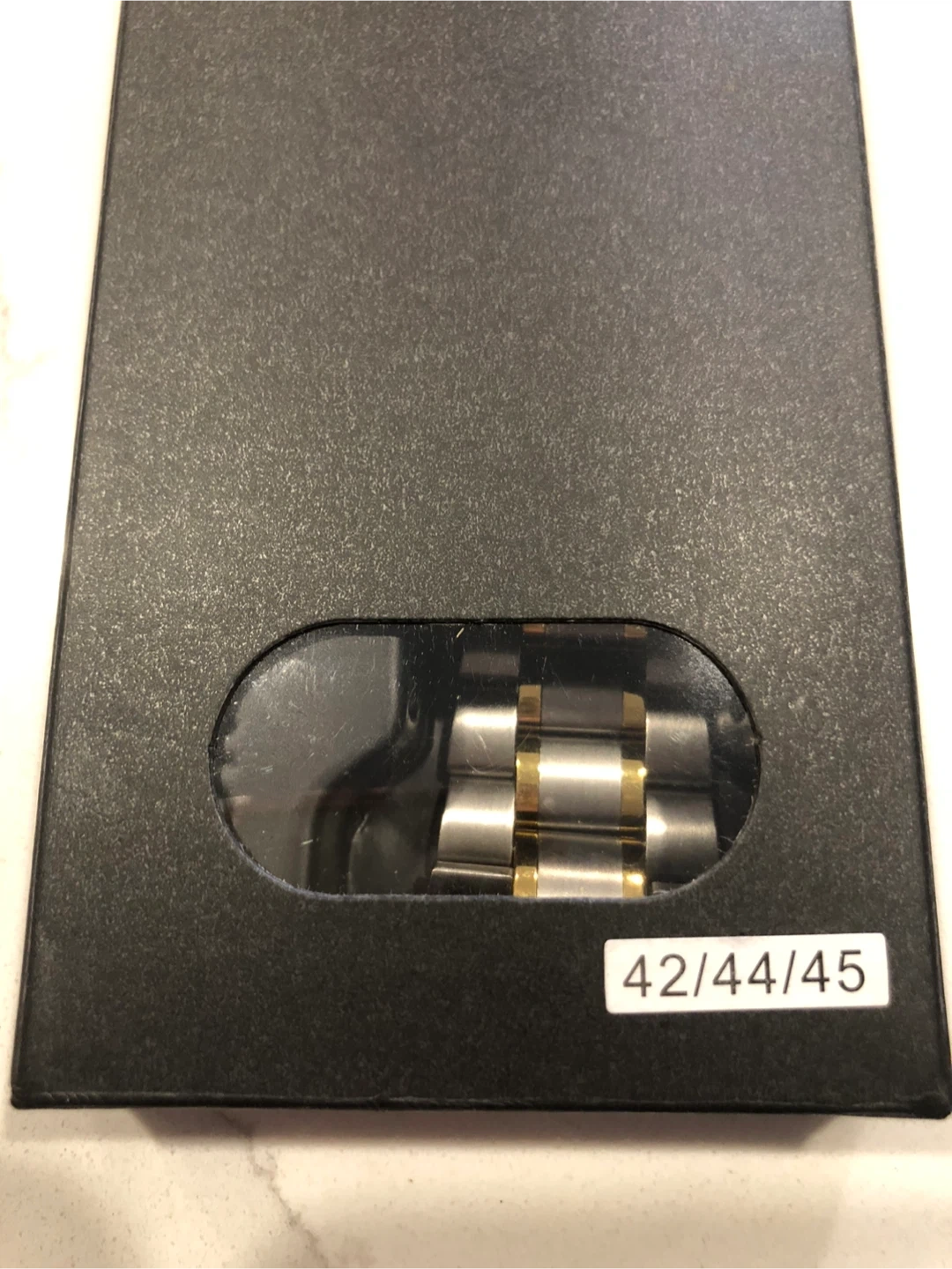 Selling a lightly used Apple Watch band that fits the 42mm, 44mm, and 45mm Apple Watches! It's a stylish silver and gold colour and comes in its original box with all the components.