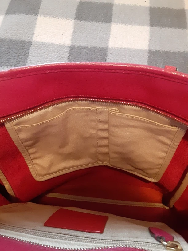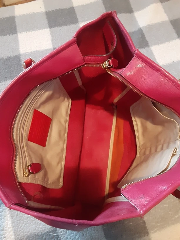 Selling a vibrant pink Coach tote bag! It's in great condition and has a small blemish on the one end as shown in the photos, I have lowered the price very low to take in the blemishes, Its ready for a new owner. Perfect for carrying all your essentials in style.