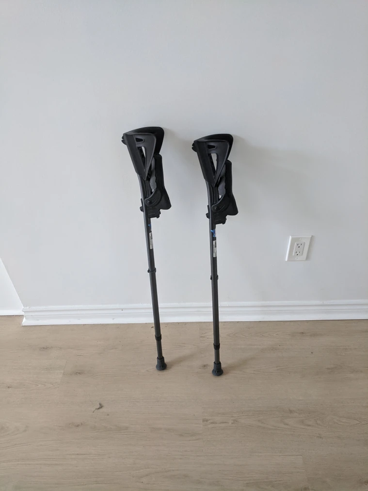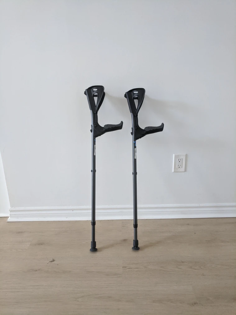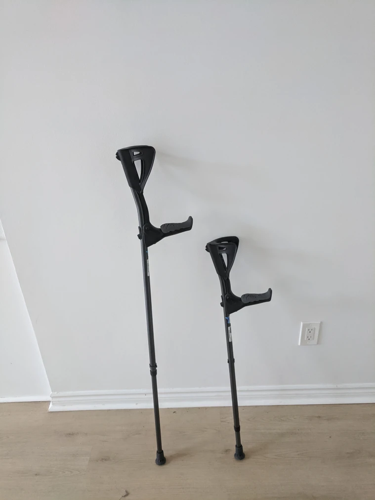 Selling a pair of forearm crutches in great condition! They are adjustable to suit different heights. Perfect for anyone needing a bit of extra support while recovering. They feature a comfortable ergonomic design. Each $25, two $45