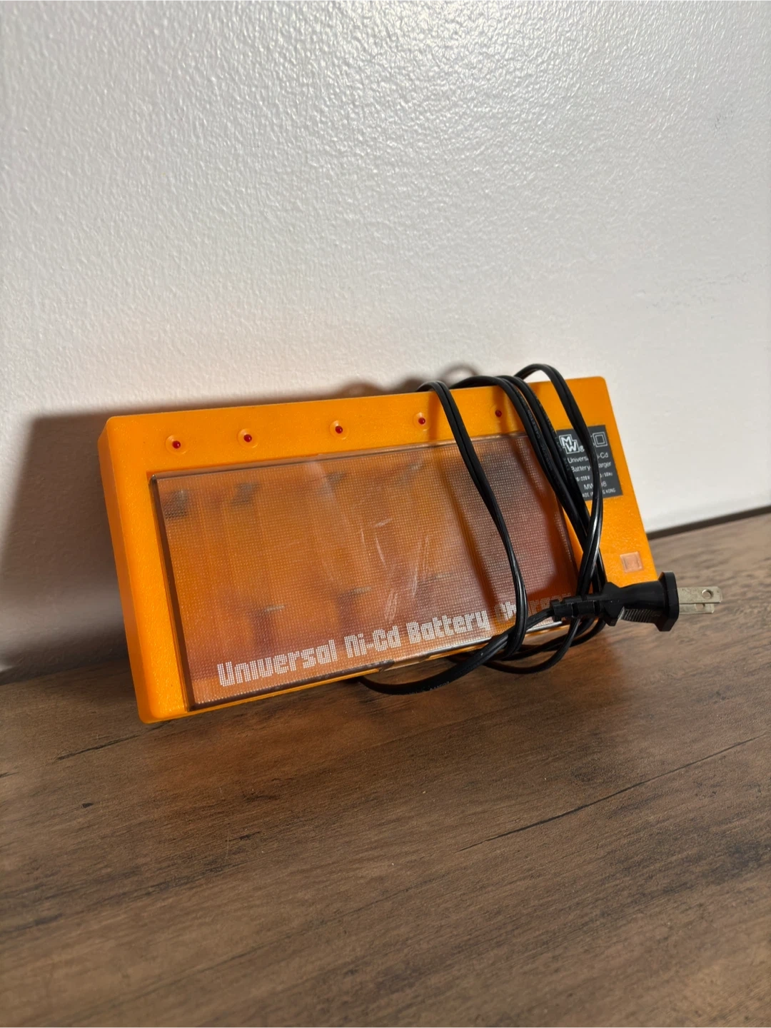 A classic MW-398 universal Ni-Cd charger in bright vintage orange — fully functional and great for collectors or electronics enthusiasts.