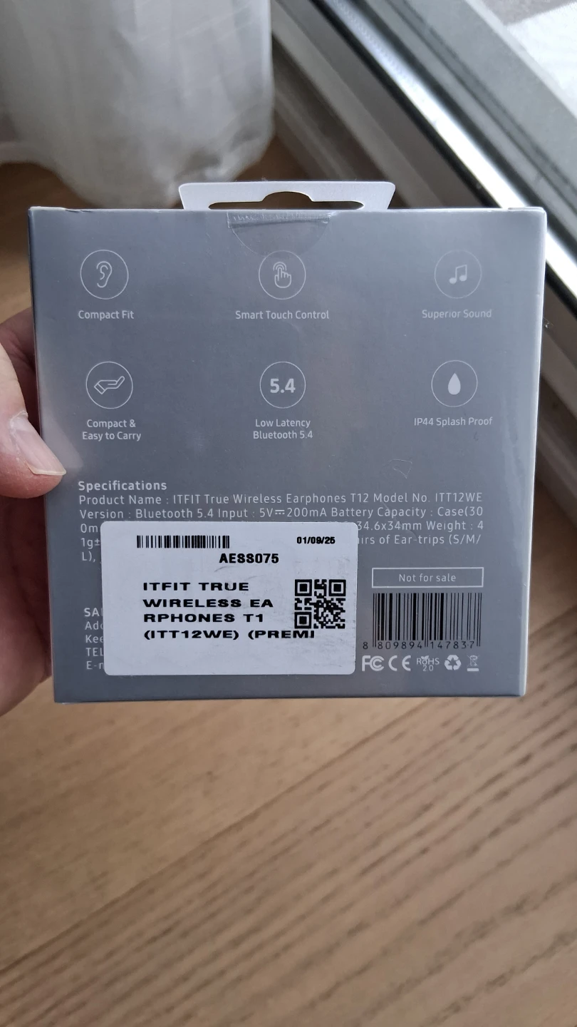 The T12 True Wireless Earphones, made by Samsung C&T, feature the following specifications: