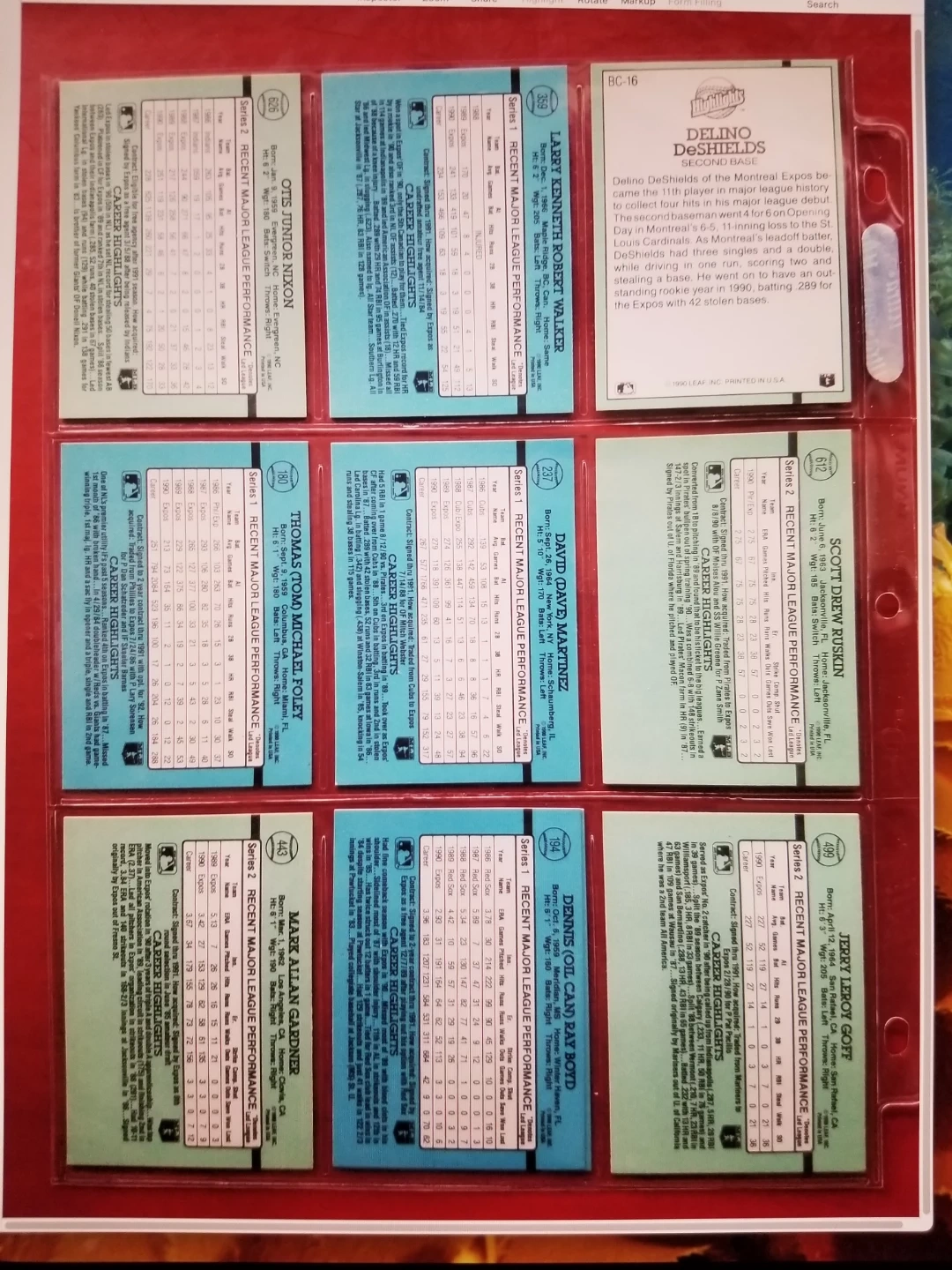Selling a collection of 1991 Montreal Expos baseball cards. These cards feature players like Larry Walker, Delino DeShields, and more. Great for any baseball card collector!