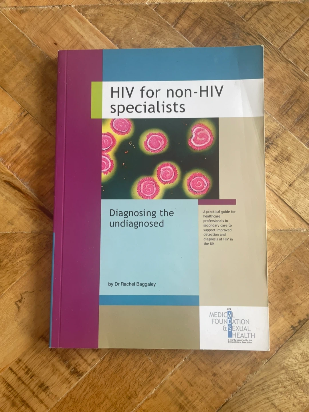 Selling a book titled 'HIV for non-HIV specialists: Diagnosing the undiagnosed' by Dr. Rachel Bagguley. It provides essential information for healthcare professionals in secondary care. The book includes a detailed contents list, comprehensive index, and full colour illustrations.