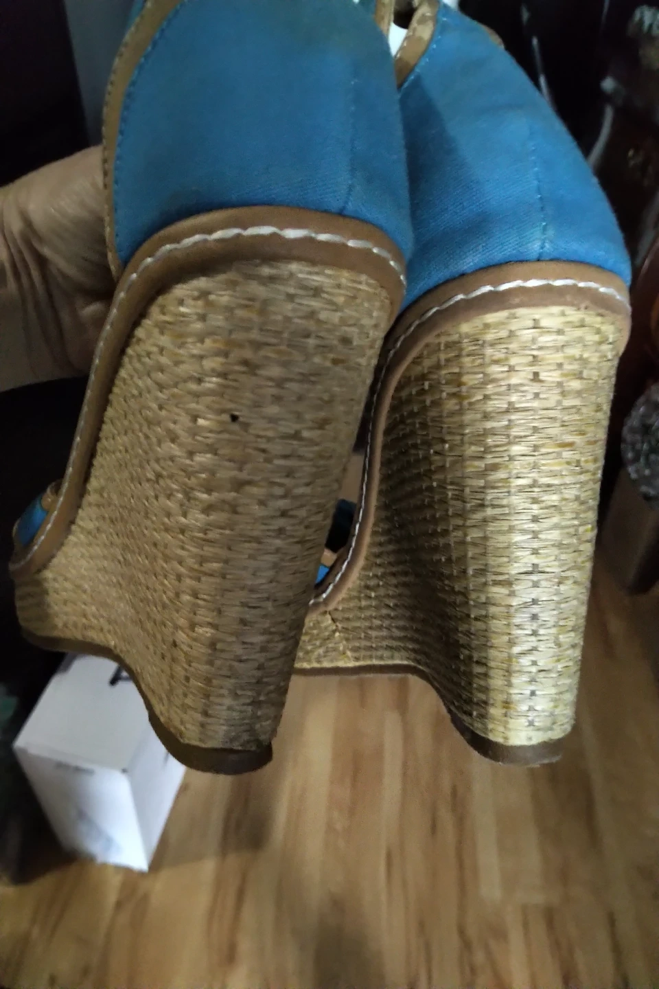 Pair of blue wedges with front bow-like New.