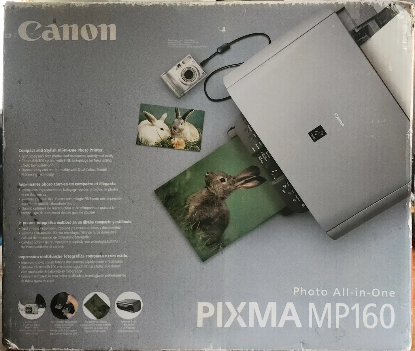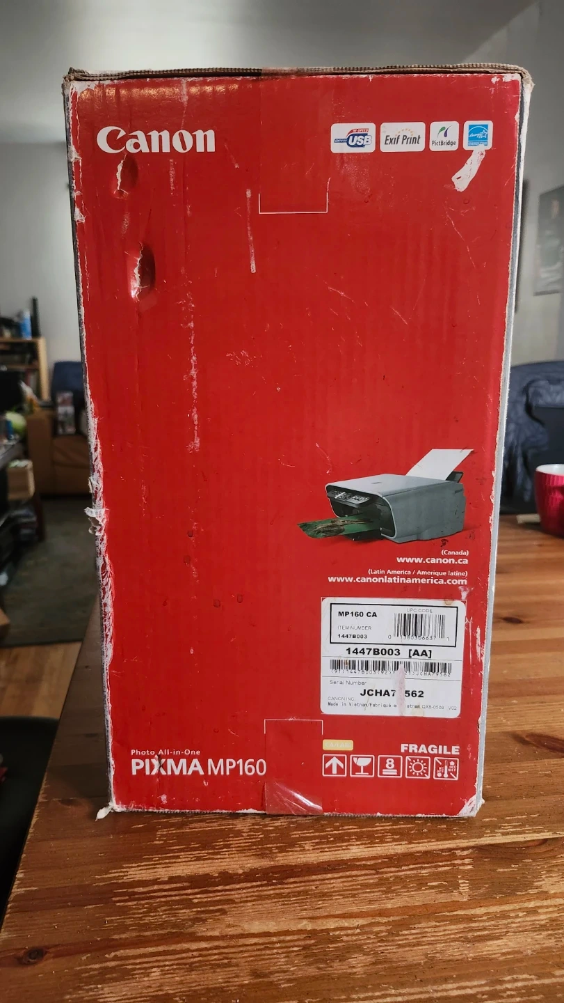 Selling a Canon PIXMA MP160 Photo All-in-One printer. It's a compact and stylish printer that can print, copy, and scan photos and documents quickly and easily. The box is included!