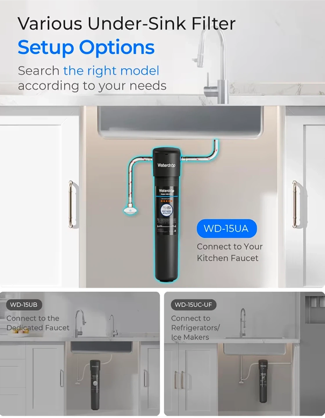 Selling a brand new Waterdrop WD-RF15 under sink water filter! It's certified safer for better-tasting water, proven to reduce chlorine, and ensures lead-free safety. Enjoy fresher, purer water with its 20x larger filtration surface and dirt adsorption. Easy to install and maintain, and turns your water into bottle-like fresh taste!