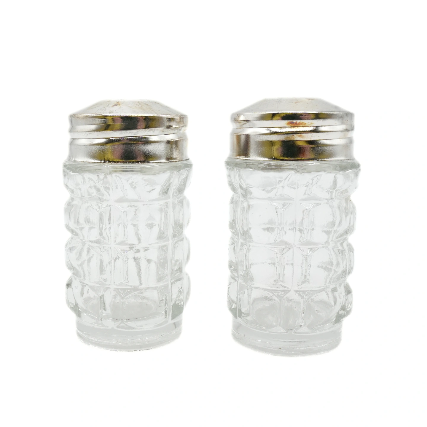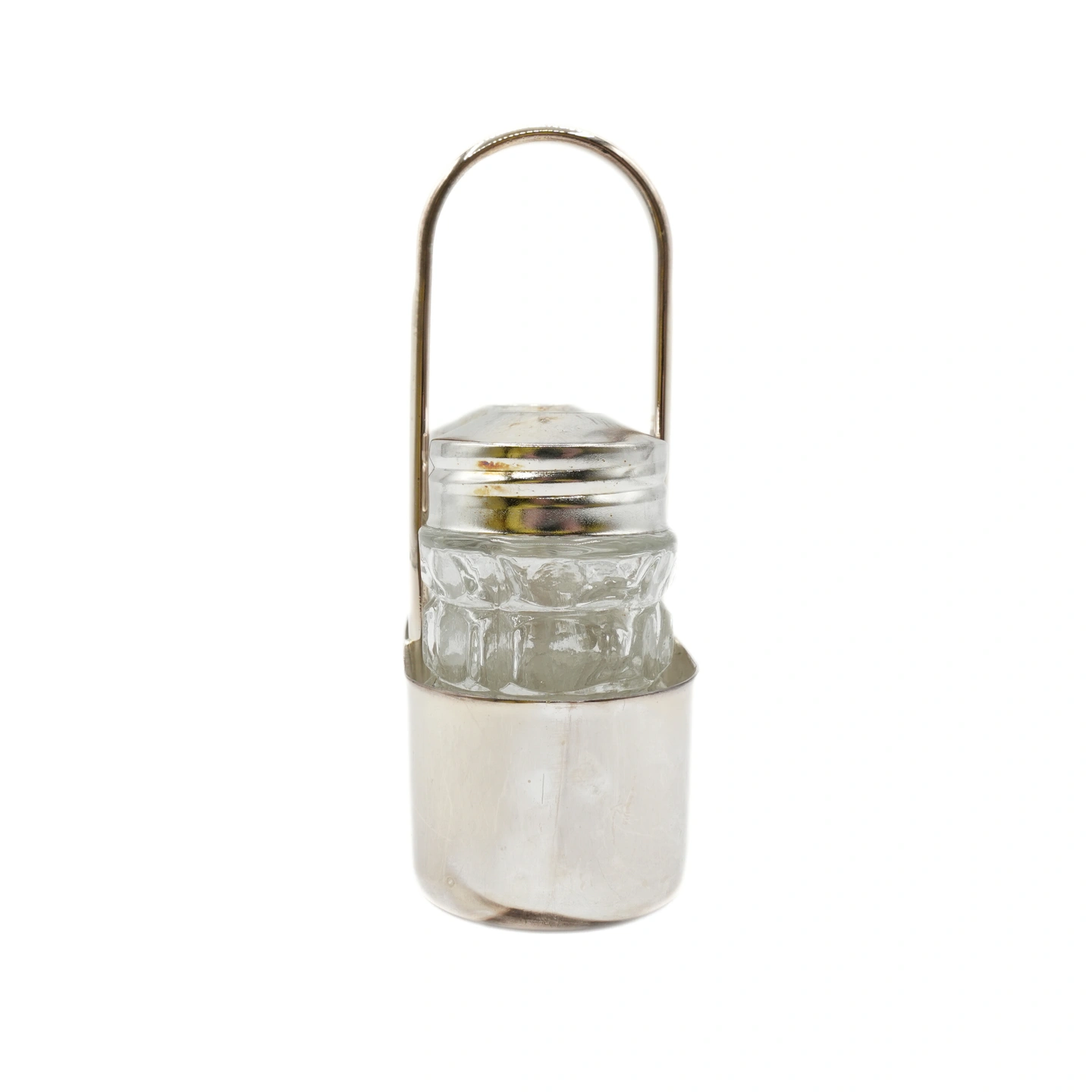 Vintage Glass Salt & Pepper Shakers with Silver Holder