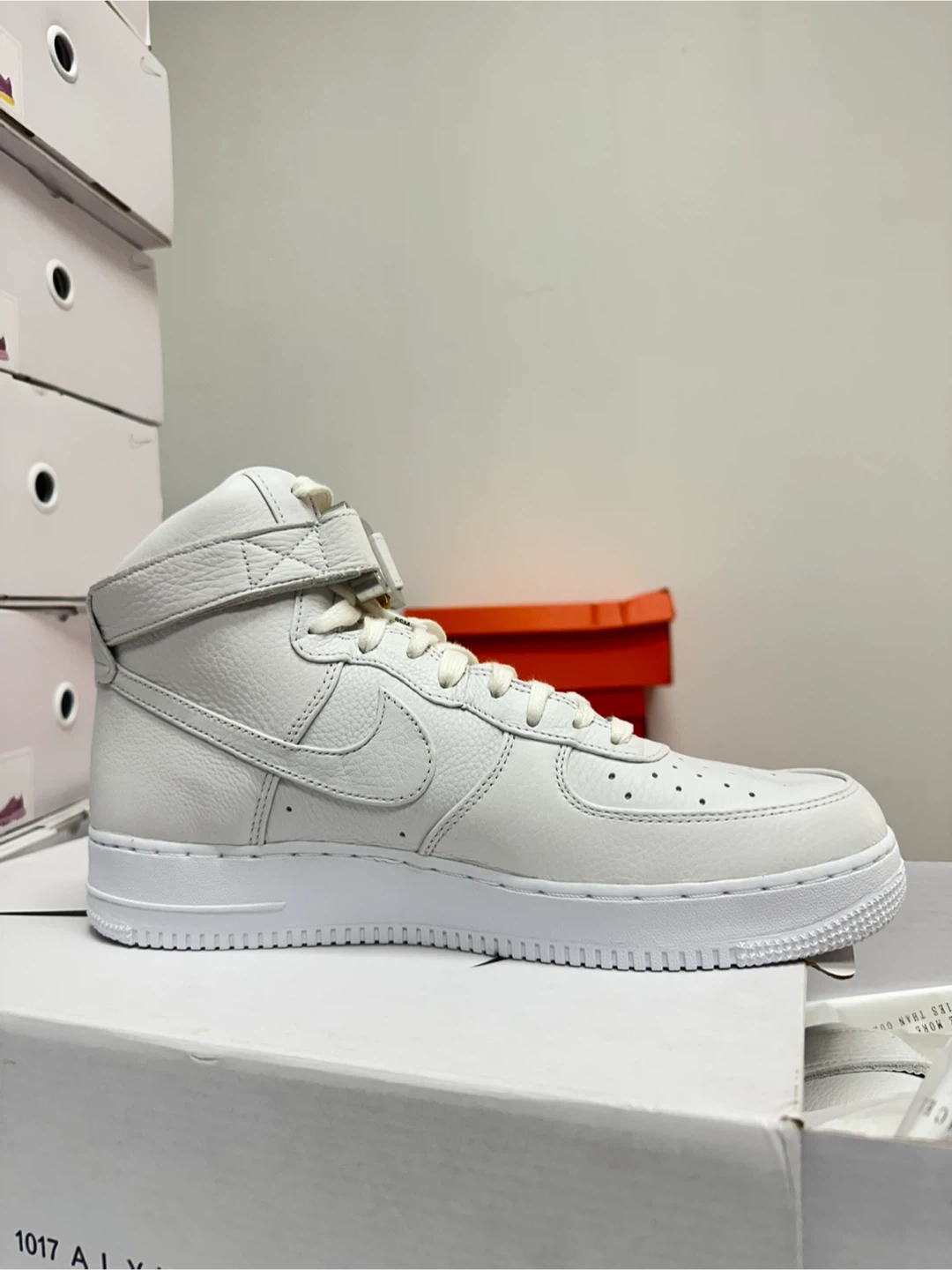 Selling a pair of Nike Air Force 1 High 07 x 1017 ALYX 9SM in white-metallic silver. These shoes are in great Brand New condition and come with the original box. A stylish and unique collaboration!