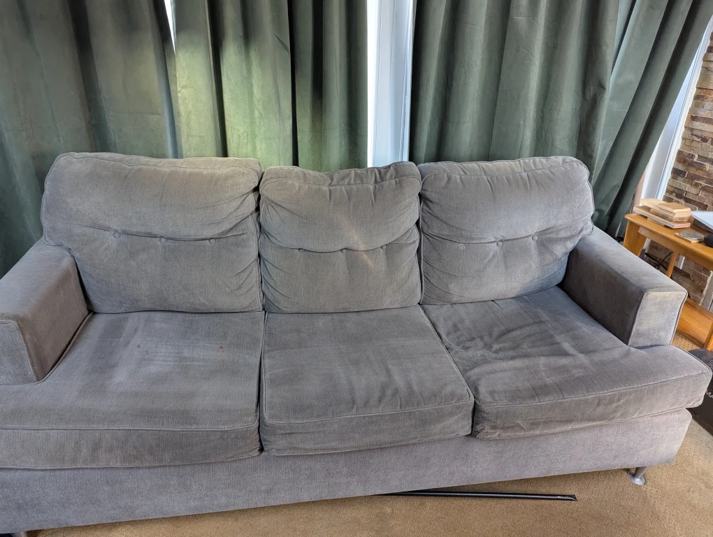 Giving awaya comfy grey sofa bed! The sofa easily converts into a bed, making it ideal for hosting visitors. It has a pull out mattress.