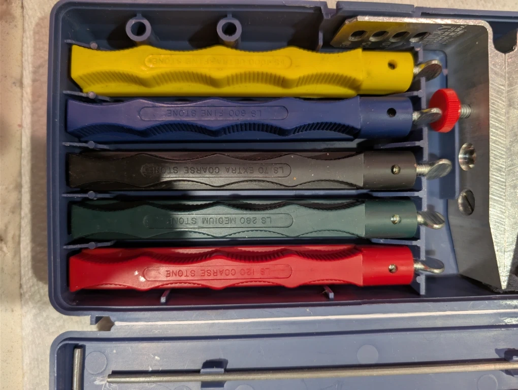 Selling a Lansky Sharpeners knife sharpening system! It comes with the original box and all components for sharpening your knives. Includes multiple stones with varying grits, ensuring you can achieve the perfect edge on your blades. Great for keeping your knives in top condition! Made in USA