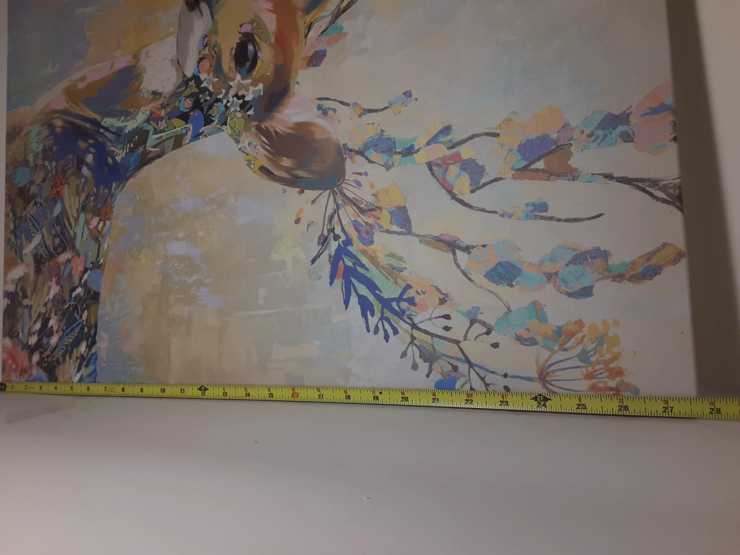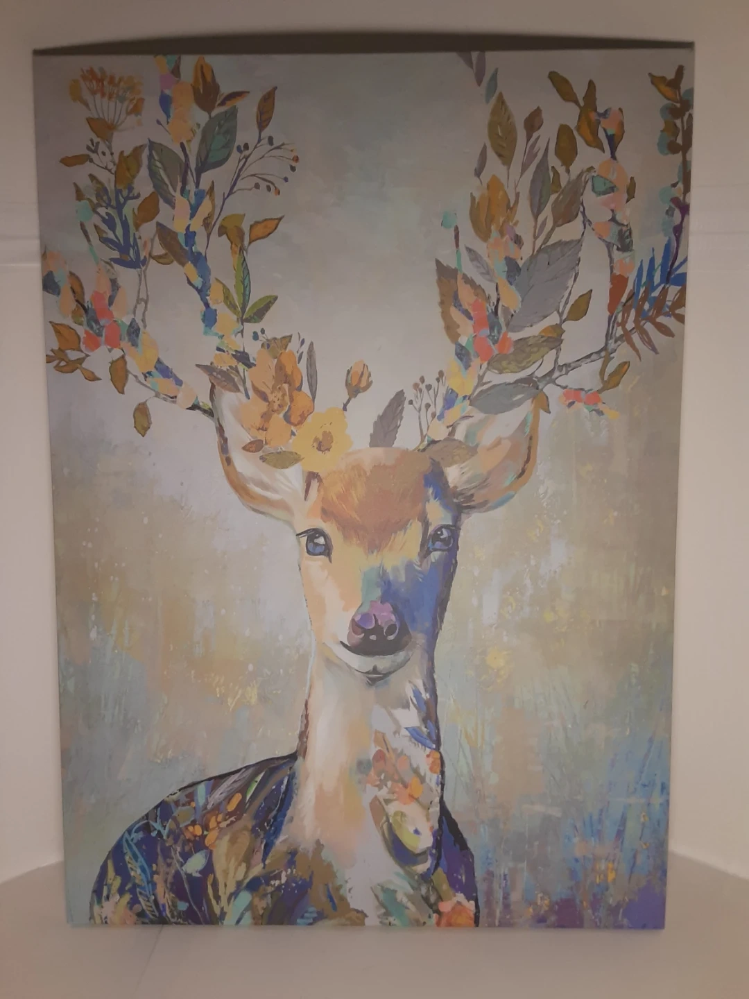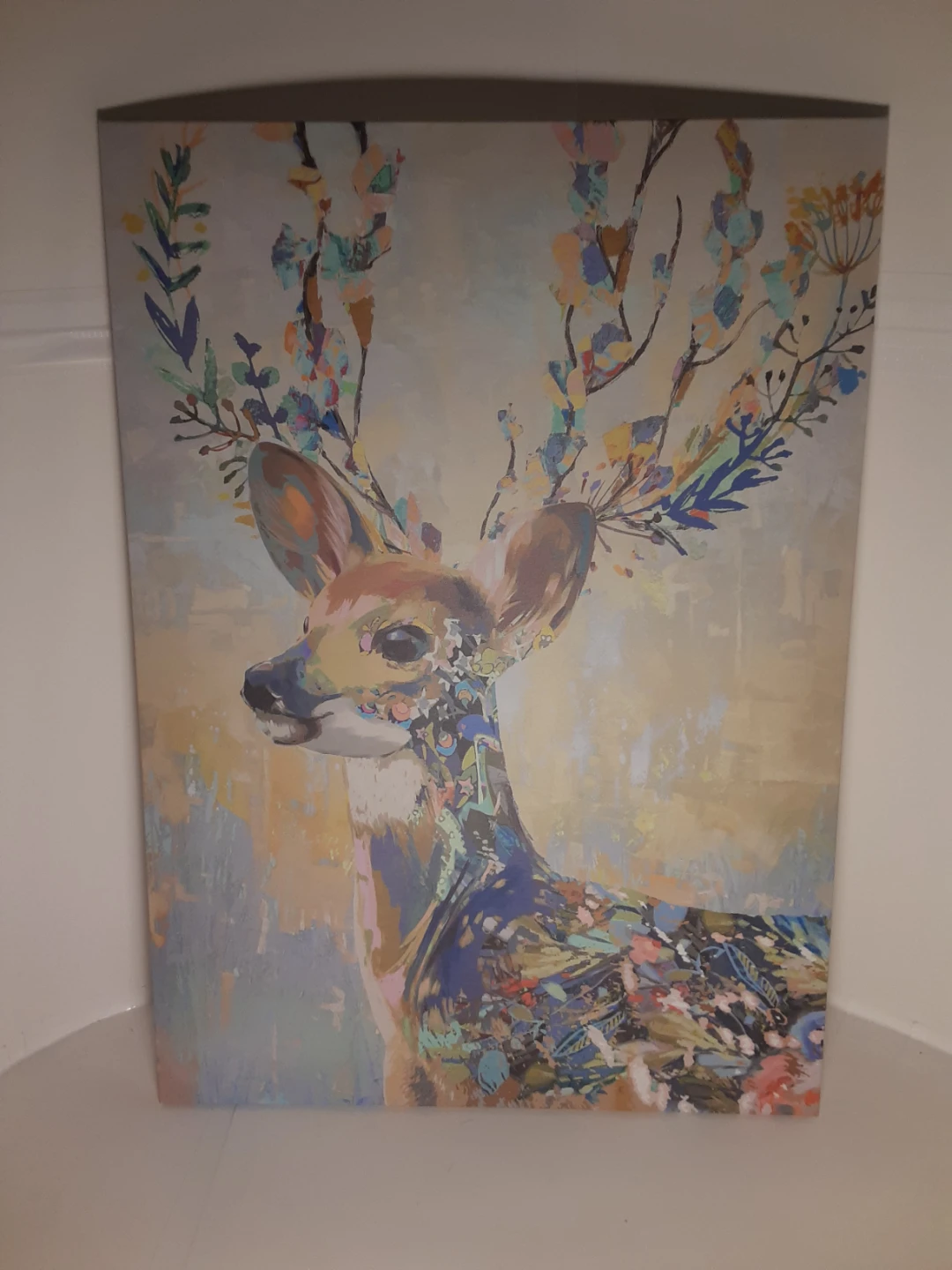 Set of two deer paintings printed on 28"x22" canvas, like new and sold together.