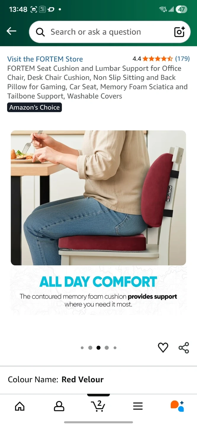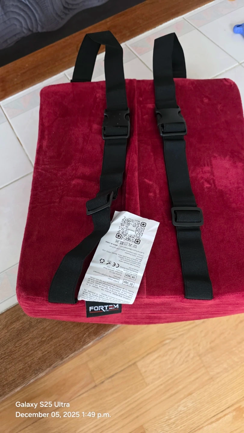 Here's a FORTEM lumbar support cushion in red velour! It's designed for all-day comfort, providing support where you need it most. Great for office chairs, desk chairs, car seats, or even for gaming. This cushion helps with non-slip sitting and back pain, and it's also suitable for sciatica and tailbone support. The cover is washable, making it easy to keep clean!