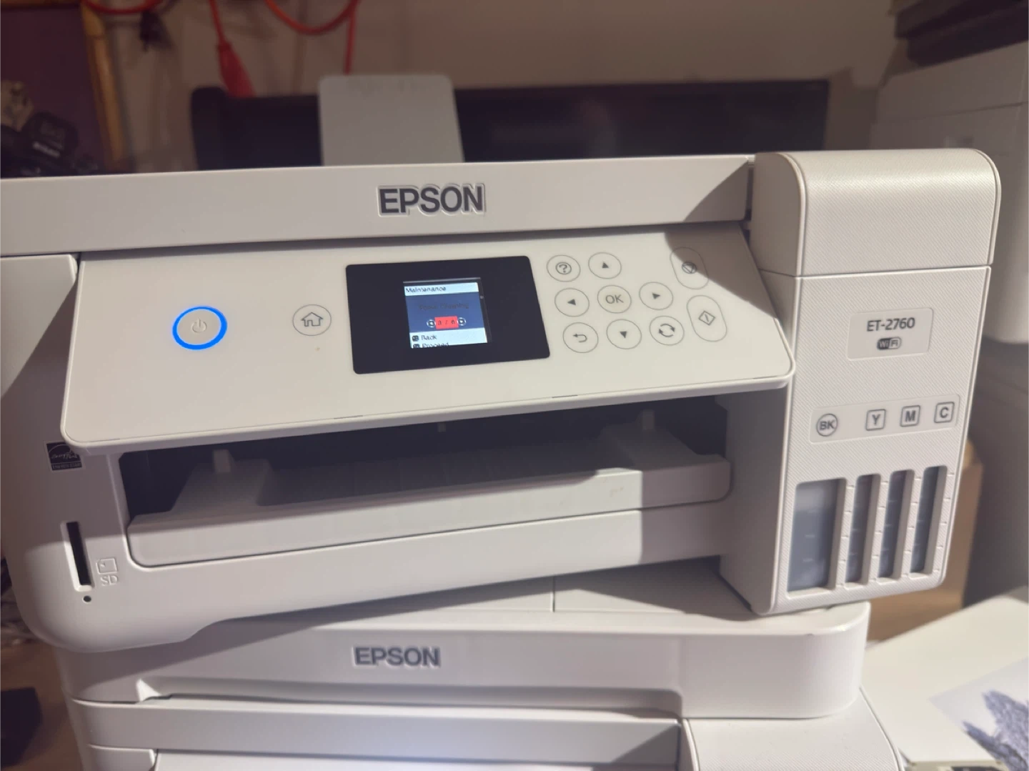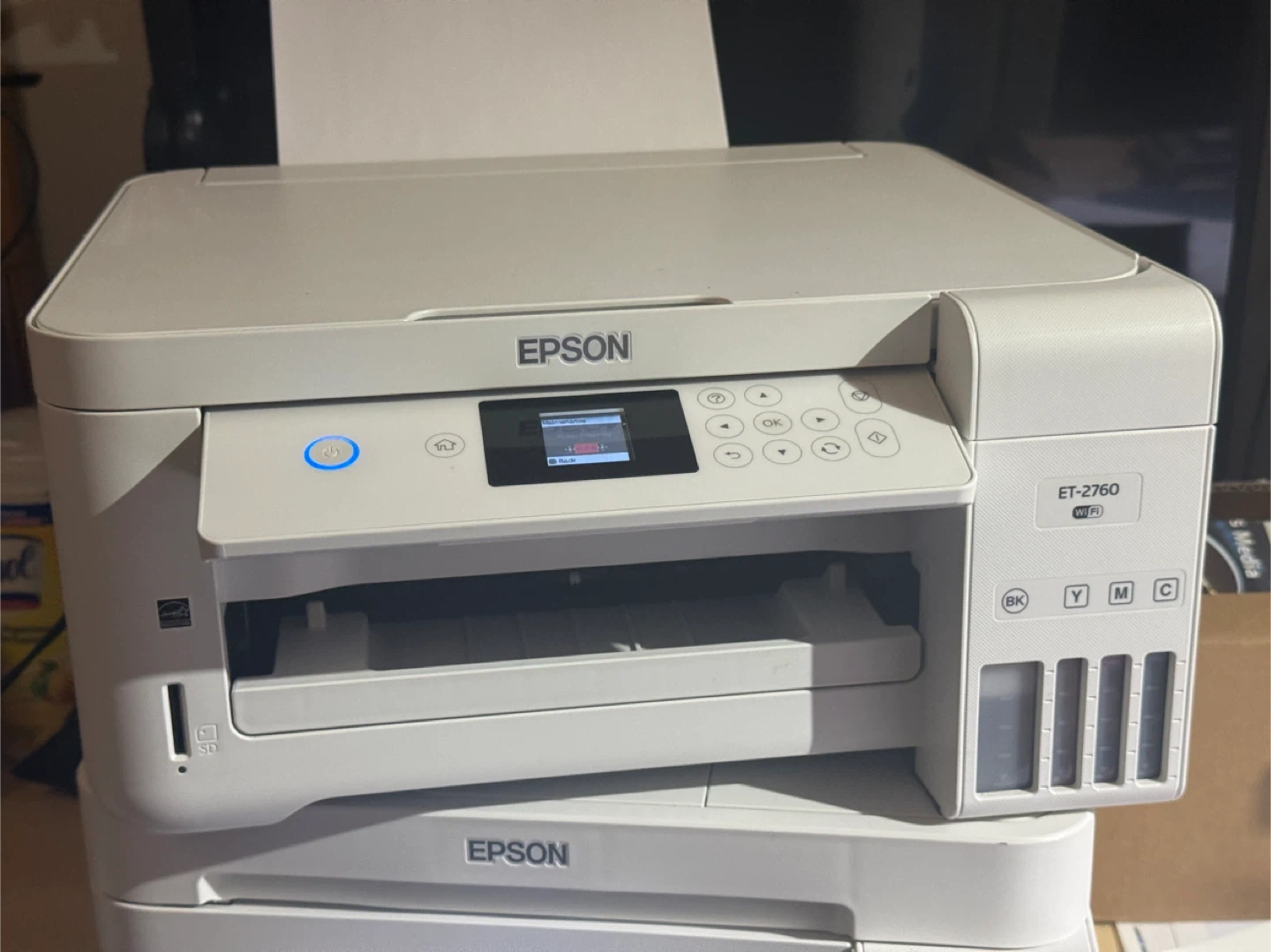 Selling an Epson ET-2760 EcoTank wireless all-in-one printer. It's in great condition and ready to go! Right now black works great.