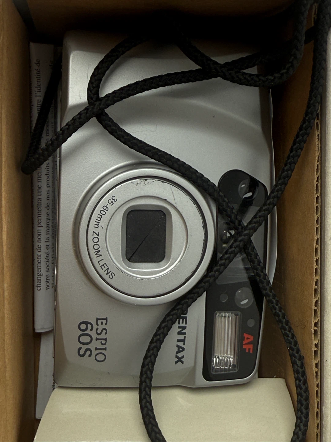 Selling a Pentax Espio 60S 35-60mm zoom lens compact camera! It comes with the original box. This camera is in great condition and ready for its next owner