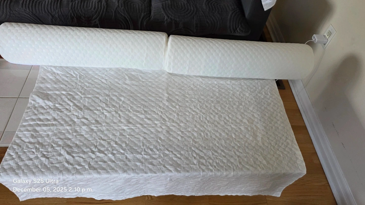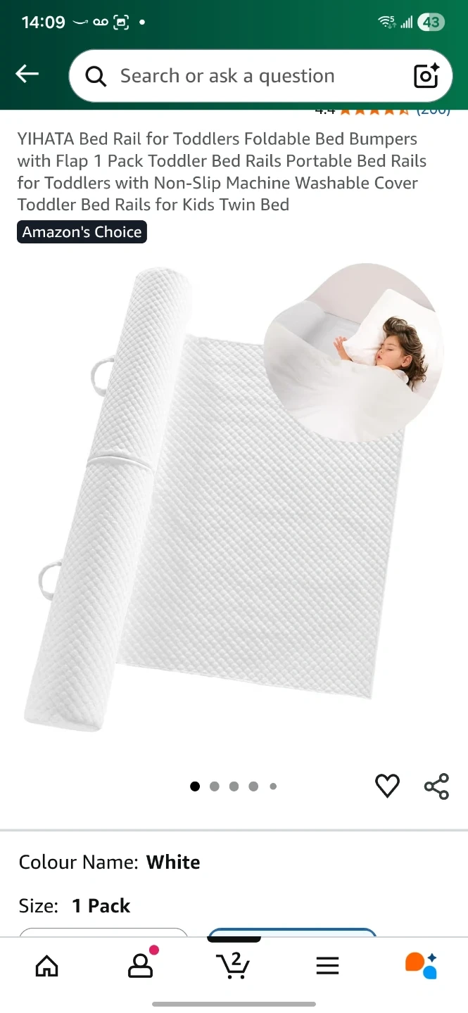 Selling a YIHATA bed rail in white, size 1 pack. It's designed for toddlers and features a foldable design for easy storage and portability. The bed rail includes a non-slip flap to hold it firmly in place and a non-slip bottom. Originally bought for $52.99